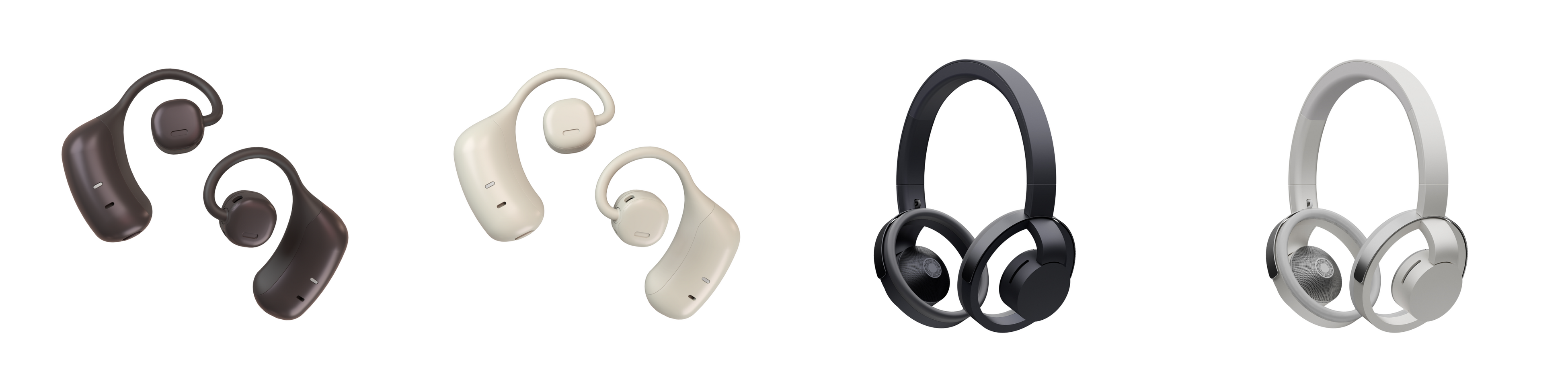 オープンイヤー型オーバーヘッド耳スピーカー「nwm ONE」(画像右から2点)