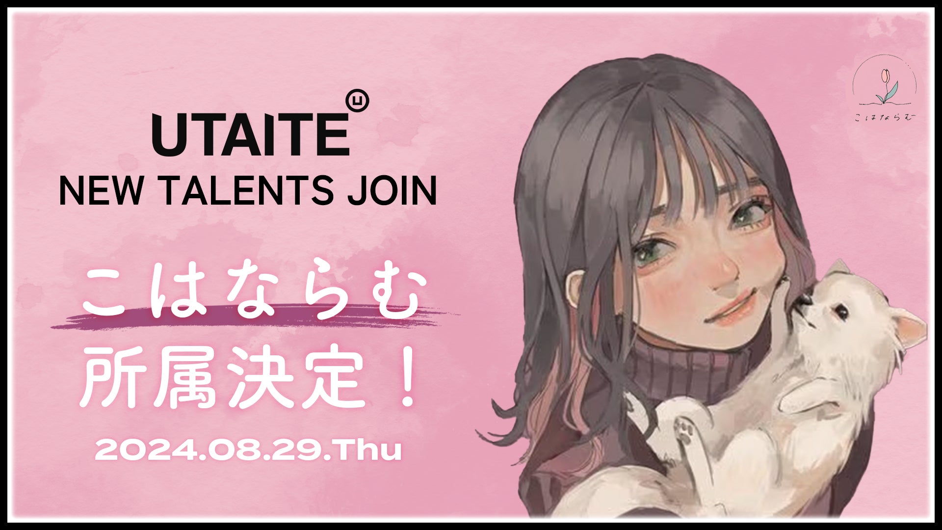 2.5次元IP開発、運営を行う株式会社ウタイテ(本社:東京都新宿区、代表取締役:倉田将志)は、2024年8月29日(木)に当社が運営を行う2.5次元IPグループ『UTAITE』に、YouTubeやbilibiliにて活動中の次世代グローバルアーティスト『こはならむ』が所属したことをお知らせいたします。