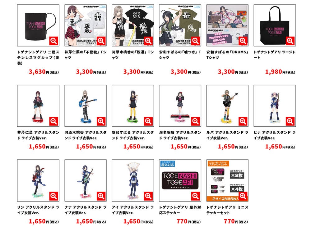 ・二次元コスパ/『ガールズバンドクライ』グッズ一覧