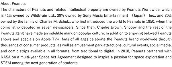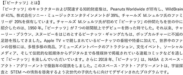 <協力>ソニー・クリエイティブプロダクツ、PEANUTS WORLDWIDE LLC