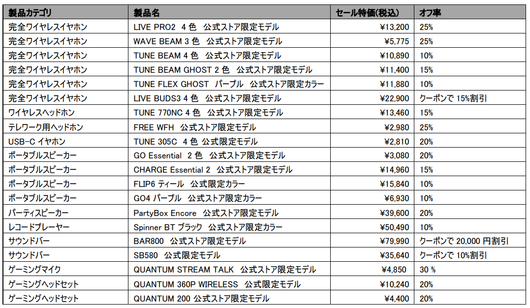 ※オフ率は、JBL公式サイトにおける2024年8月26日時点の販売価格を基準に当社が算出した数値です。