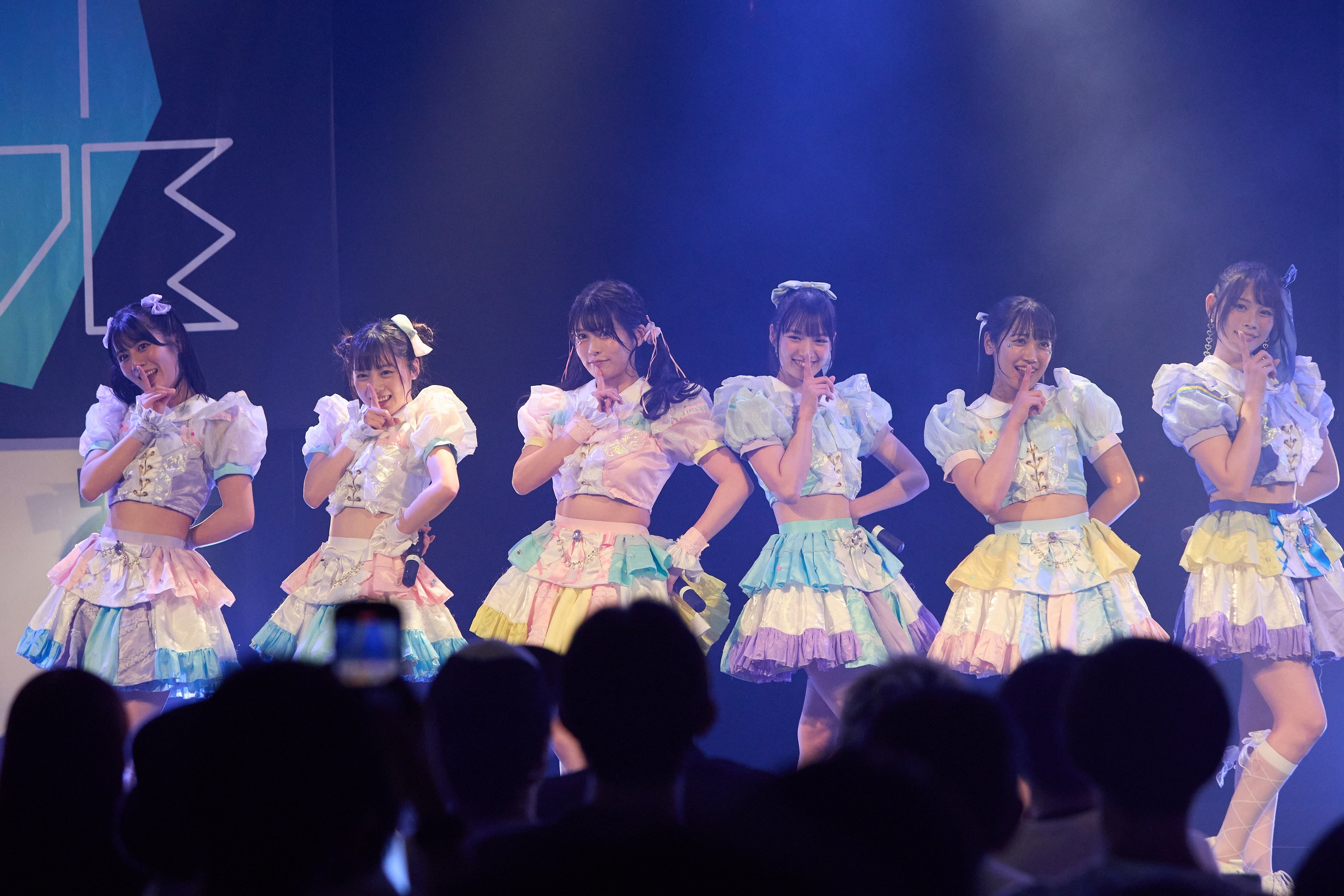 続けてステージに上がったのは、B.L.T.本誌で連載「すいすてのいちページ」をもつSWEET STEADY。彼女たちもまた2024年3月デビューのフレッシュなグループ。「ハートの魔法」、「始まりの合図」、「Sweet Cafe」といったカワイイ曲で観客をときめかせると、「Call me, Tell me」、「なんてねっ!」でさらにすいすての可愛さが全開に! 締めは、2024年12月に1stシングルCDとして発売することが先日発表されたばかりの彼女たちの代表曲であるポップでキャッチーな「ぱじゃまぱーてぃー!」。動画撮影可能曲だけあり、スマホを構えるファンも多くいた。おなじみとなった白石まゆみの「おやすみ!」のフレーズで客席のハートをとらえつつ、30分にわたるスイステのパーティーは次のグループへバトンタッチ!