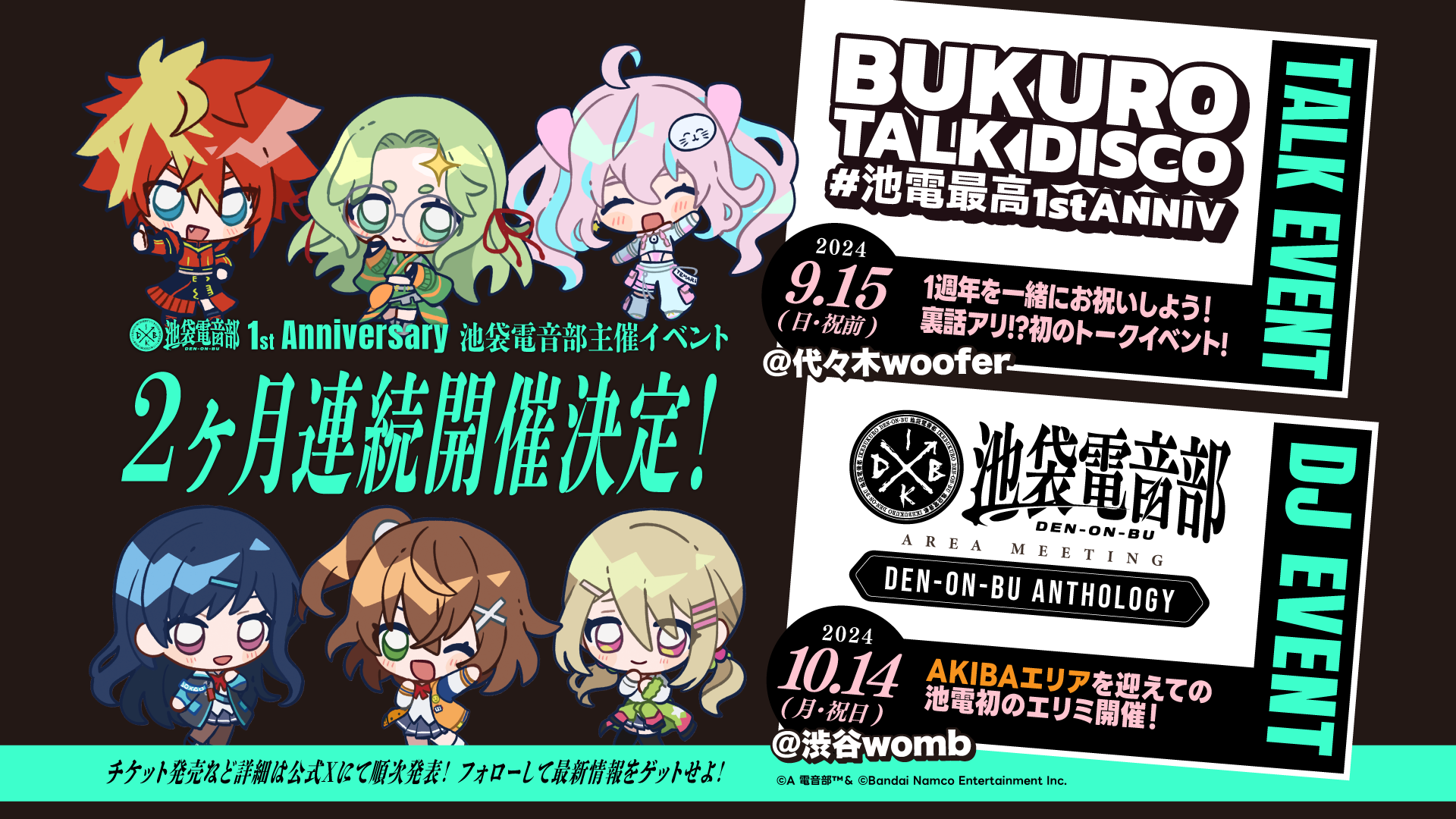 この度、エリアチェーンとしてムービックが運営する池袋電音部の1周年を記念してキャストトークイベントを開催いたします(トークイベント・ライブ配信あり)。さらに、翌月10月には渋谷Wombにてエリアミーティングを開催いたします。最新情報は公式SNSにて随時お知らせいたします。お楽しみに!