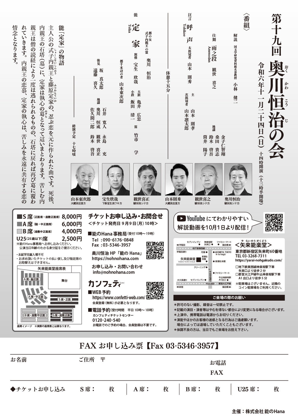 奥川恒治の会は観世流シテ方能楽師・奥川恒治主催の能楽公演です。