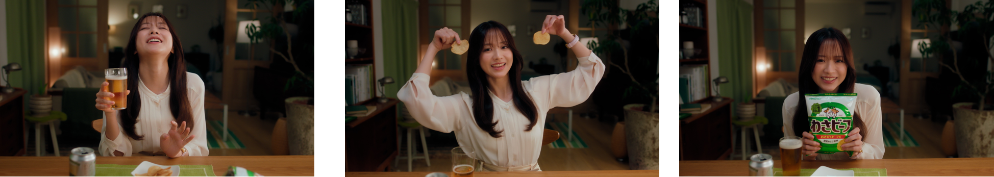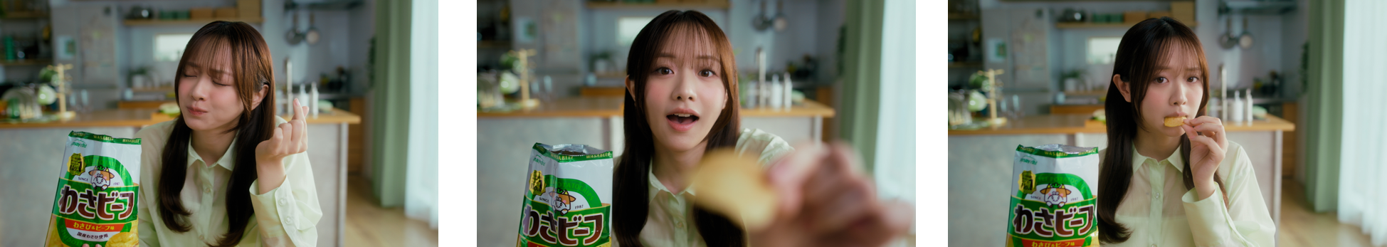 今年のわさビーフのテーマは「 あざとすぎる、おいしさ」。森香澄さんが、少しあざとくわさビーフを楽しむ様子を描いた「#わさび味の美味しさ篇」「 #⽌まらない篇」「 #乾杯篇」の3篇を公開します。