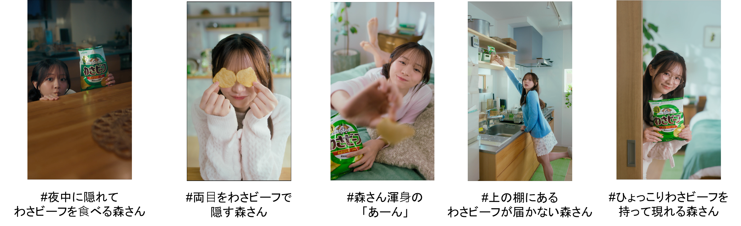 更に、森さんのあざとすぎる、ツンピリ感。を表現したショートムービー15篇も公開いたします。みなさんも、わさビーフを使って、あざとさを表現してみては?