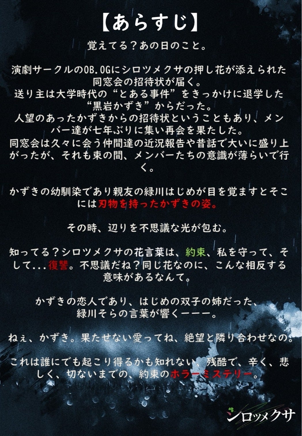 愛と友情の復讐劇のミステリー作品 舞台「シロツメクサ」上演決定!
