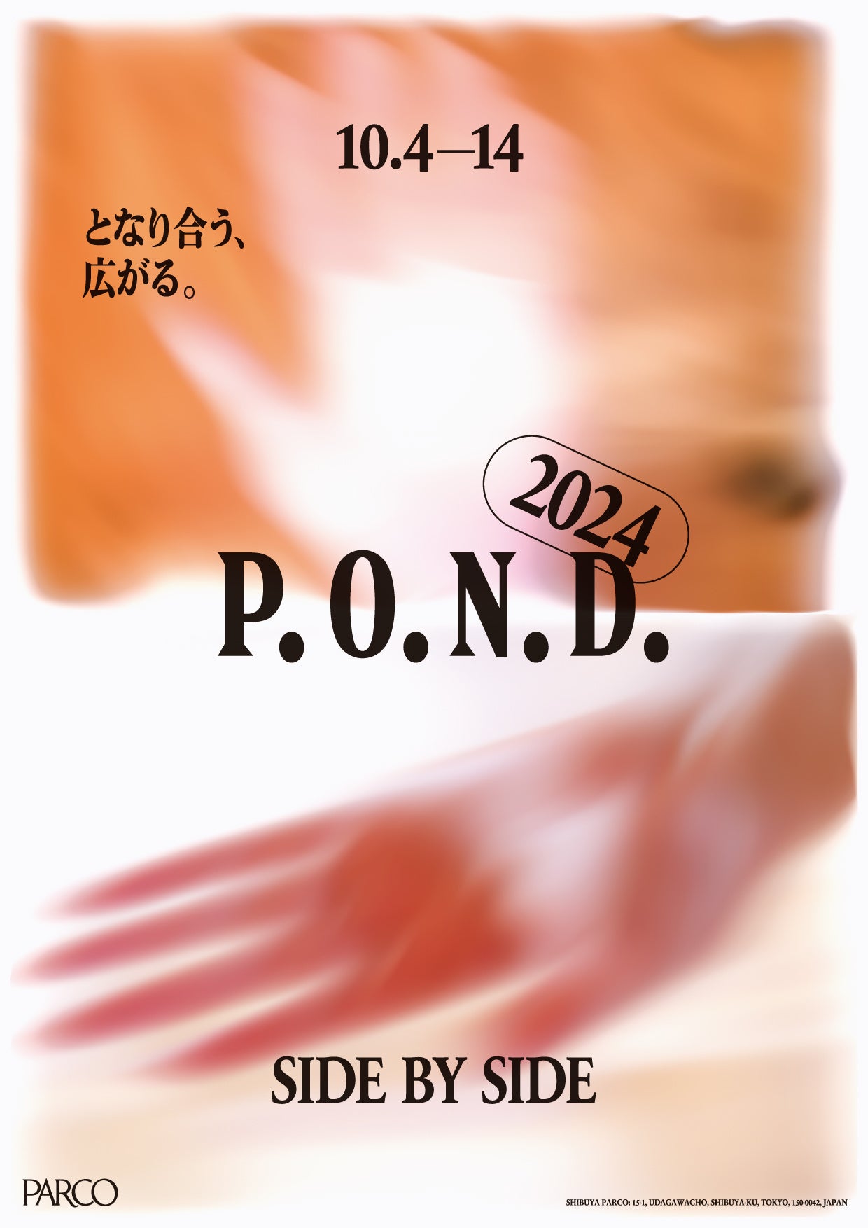 2024年のコンセプトは、「SIDE BY SIDE/となり合う、広がる」。日々、多くの情報を受け取りながら、多様な価値観や在り方が謳われる現在。〈P.O.N.D.〉での鑑賞体験を通して、もう一度同じものを隣り合って見る。自分とは異なる考え方を持つ人と肩を並べ、同じ視線に立ってみる。他者との内なるコミュニケーションを通して、今よりもさらに視界が広がっていくような空間を目指します。日本の中で最もスクランブルな都市にある渋谷PARCOだからこそ、違うものを見ること、同じものを見ることについて考えるきっかけを。