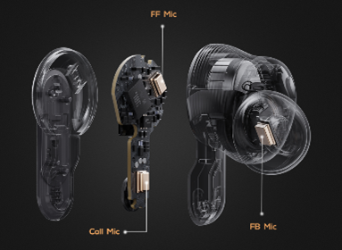 6つの通話用マイクを搭載し、通話者の声と環境ノイズを正確に集音し解析することでクリアな通話品質を確保。様々な種類のノイズをトレーニングした AIノイズ低減アルゴリズムを初採用。従来のノイズ低減アルゴリズムと組み合わせることにより、ノイズ低減アルゴリズムのみの前モデルと比較して平均約18dBのノイズ低減効果を実現。自動車、雑踏、地下鉄などの一定時間発生し続ける「定常ノイズ」の他に、赤ちゃんの泣き声や咀嚼音など突発的に発生する「過渡ノイズ」もより正確に抑制することが可能になりました。