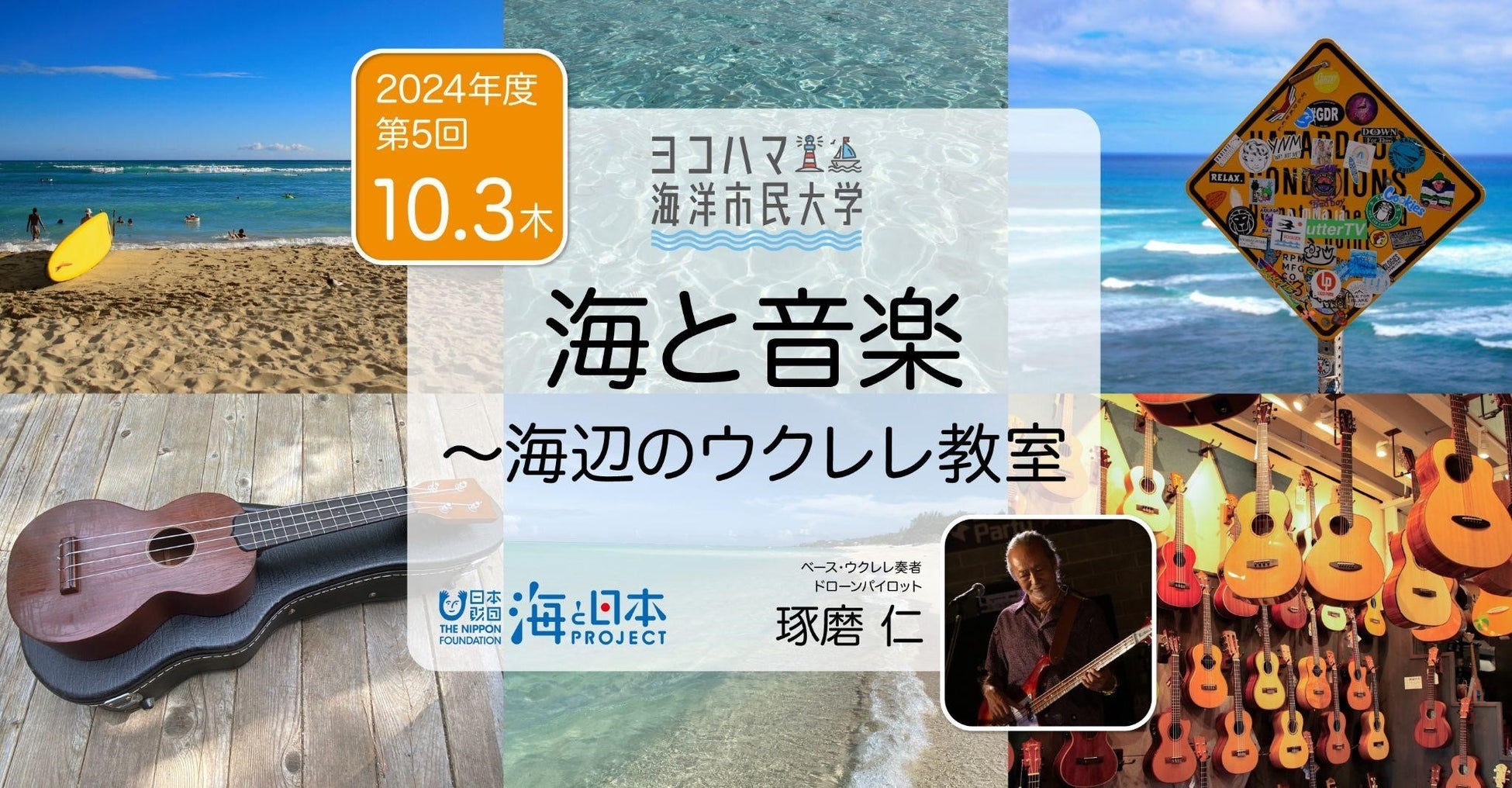 今年11年目を迎えるヨコハマ海洋市民大学実行委員会は、 6月6日(木)より今年度の講座を開始しました。第5回目となる今回の講座はベース・ウクレレの演奏や講師として活躍され、さらにドローンパイロットとしても活躍されている琢磨 仁氏にお越しいただきます。