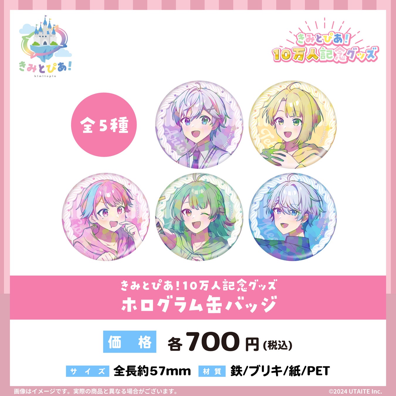 <きみとぴあ!10万人記念グッズ ホログラム缶バッジ(全5種)>