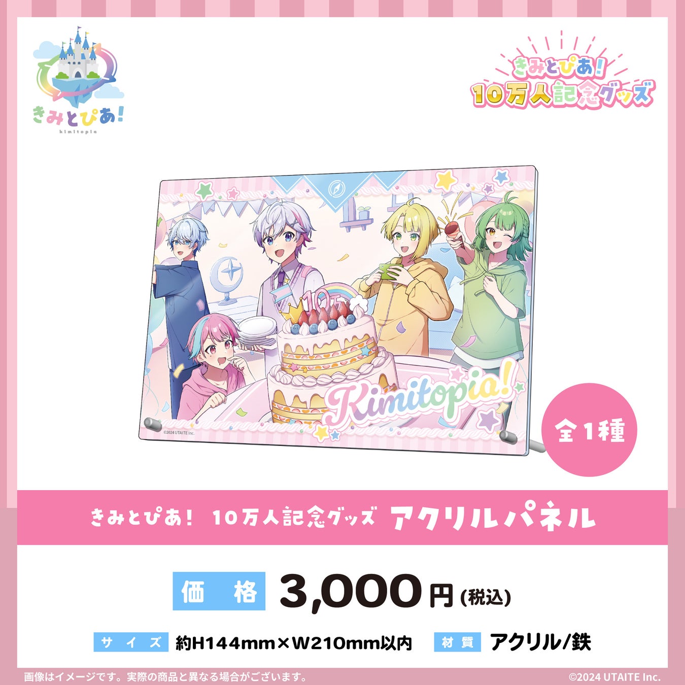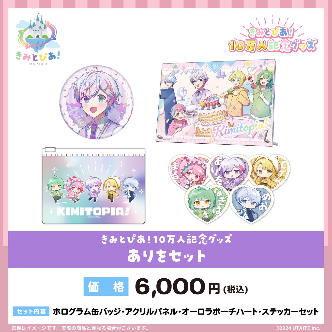 2.5次元IP開発、運営を行う株式会社ウタイテ(本社:東京都新宿区、代表取締役:倉田将志)は2024年9月21日(土)より、UTAITEオフィシャルストアにて「きみとぴあ!10万人記念グッズ」の受注販売を開始することをお知らせいたします。