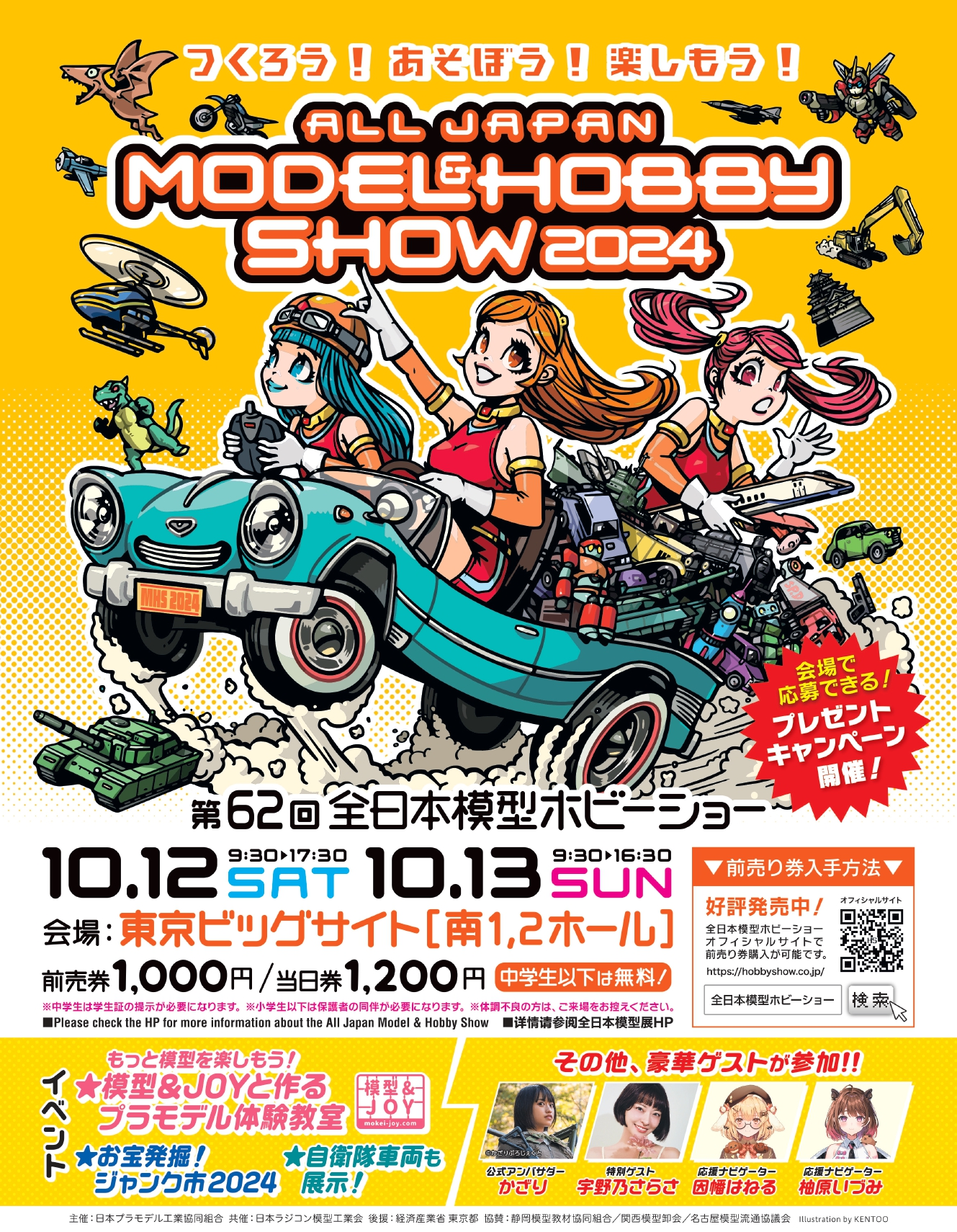 今年で62回目を迎える全日本模型ホビーショーは「つくろう!あそぼう!楽しもう!」をテーマに、プラモデル、ラジコン、フィギュア、鉄道模型、ミニカー、エアソフトガンなど、幅広いホビー製品展示とホビーの魅力を体感できるイベントです。