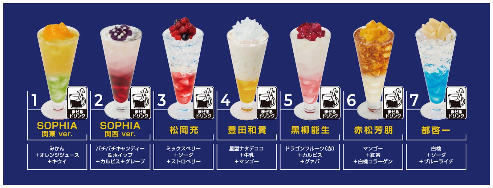 「SOPHIA」をイメージしたコラボドリンク7種[各750円(税込)ノンアルコール]をご用意しました。