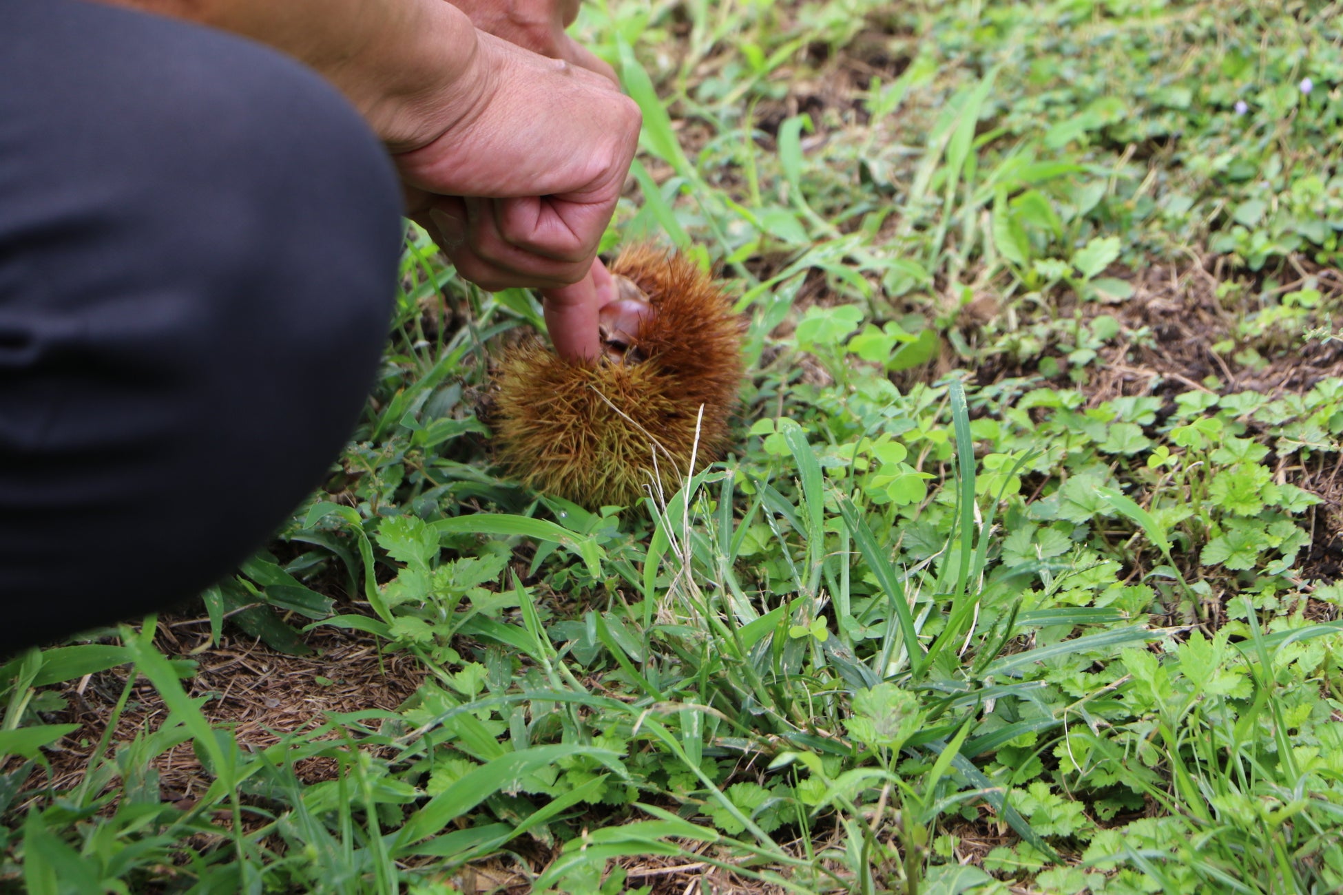 福知山城からスタートした今回の旅。秋の味覚を求めてさっそく栗畑を訪ねます。サッカーグランド3個分ほどの広大な土地で栽培されている丹波栗。