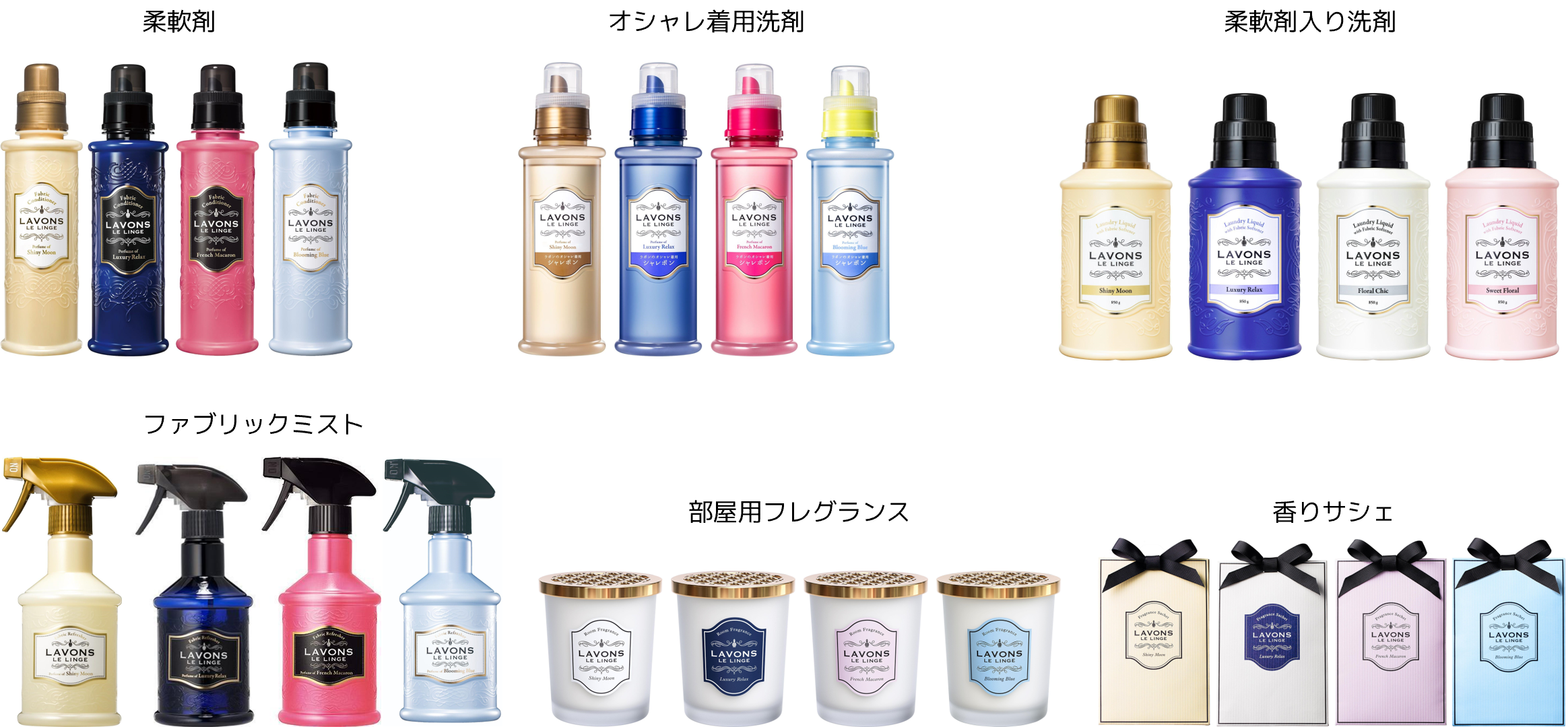 2013年9月の発売以降、柔軟剤、洗剤、ファブリックミスト、芳香剤を展開しており、お気に入りの香りを様々なシーンで楽しむことができます。