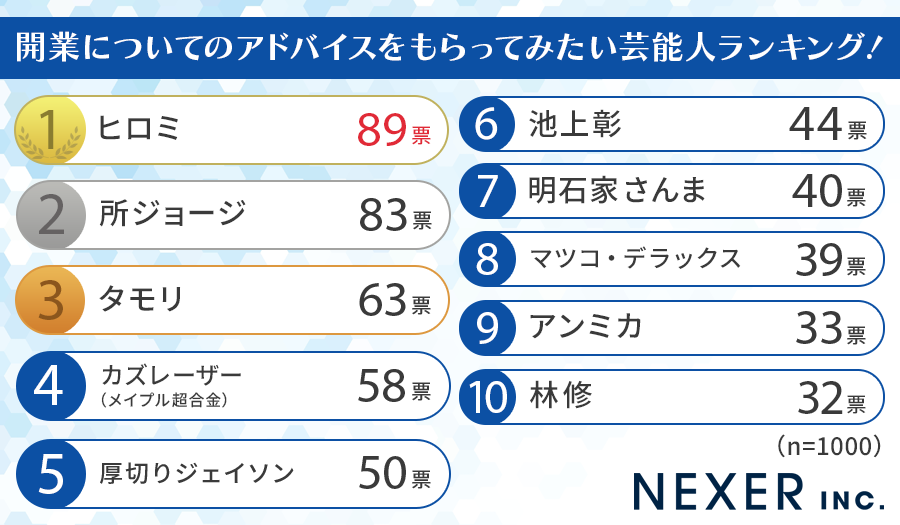 株式会社NEXER・開業についてのアドバイスをもらってみたい芸能人に関する調査