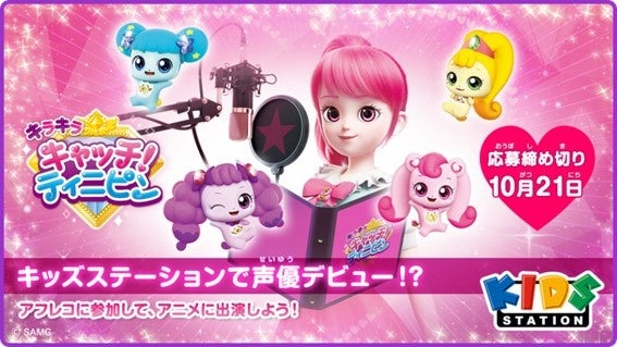 「声優」は子どもたちのなりたい職業ランキングで上位に入る職業です。キッズステーションでは、この企画を通じて、「キラキラ キャッチ!ティ二ピン」ファンの皆さんはもとより、多くの子どもたちの夢を叶えるお手伝いを目指しています。