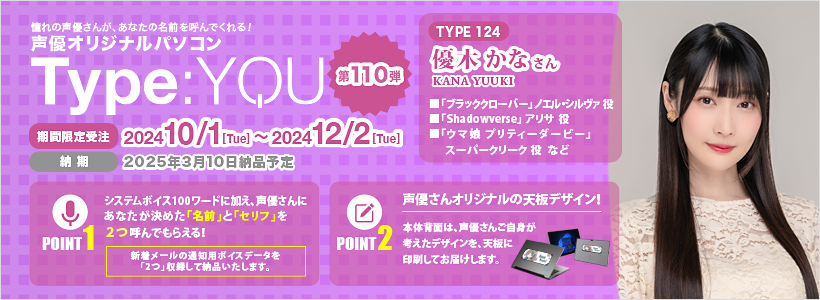 声優オリジナルパソコン【Type:YOU】第110弾 商品ラインナップについて