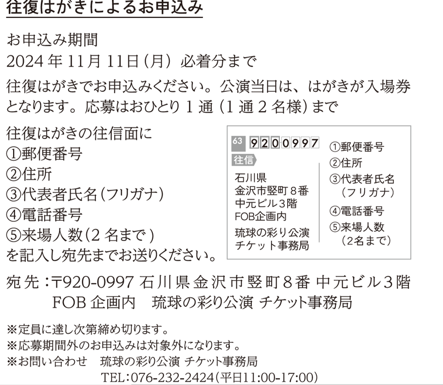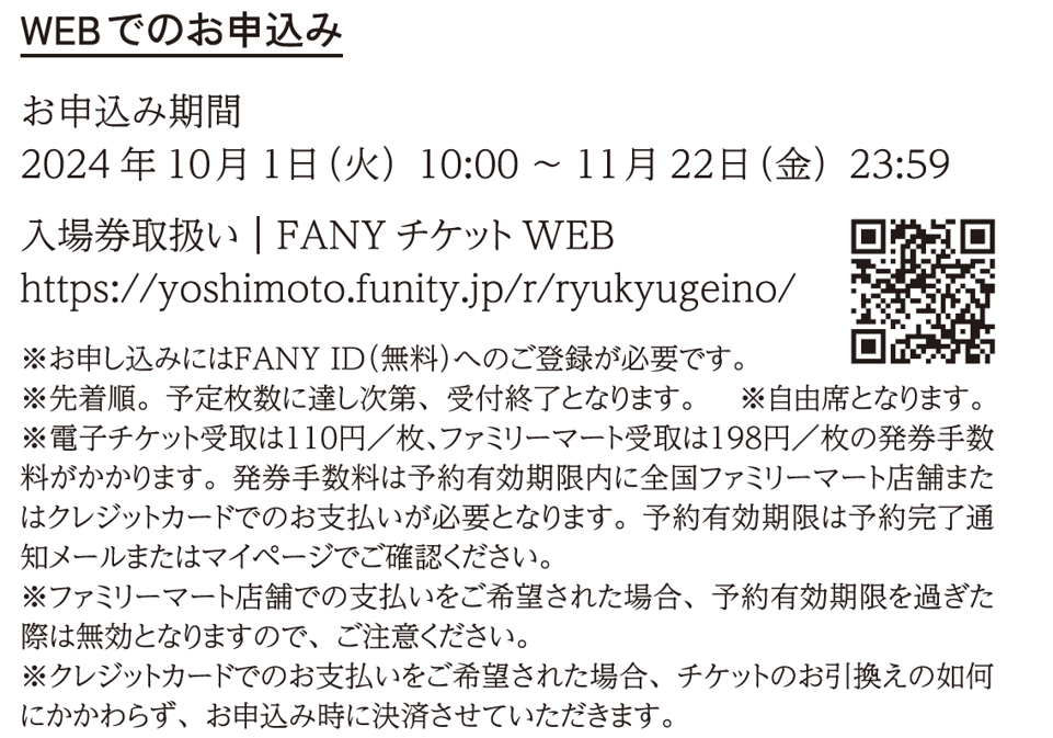 観覧料:無料 申し込み方法により発券手数料が発生する場合がございます。詳細はWEBまたは当案内文3枚目をご確認ください