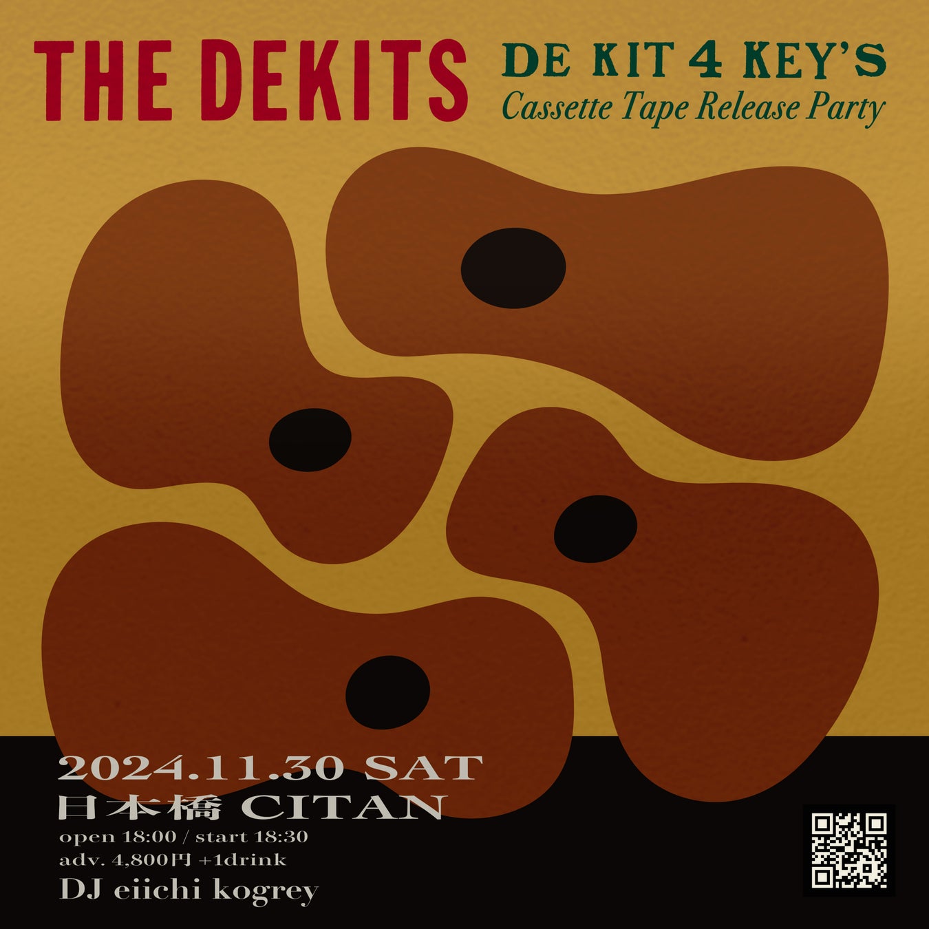 メンバー全員がVocal & Guitarを努める独自のスタイルで活動中のTHE DEKITS(ヨミ:ザ・デキッツ)が、自身の1stフルアルバム『DE KIT 4 KEY’S』(DK4/2011年12月7日発売)を、2024年12月11日にカセットで再発売することを発表した。