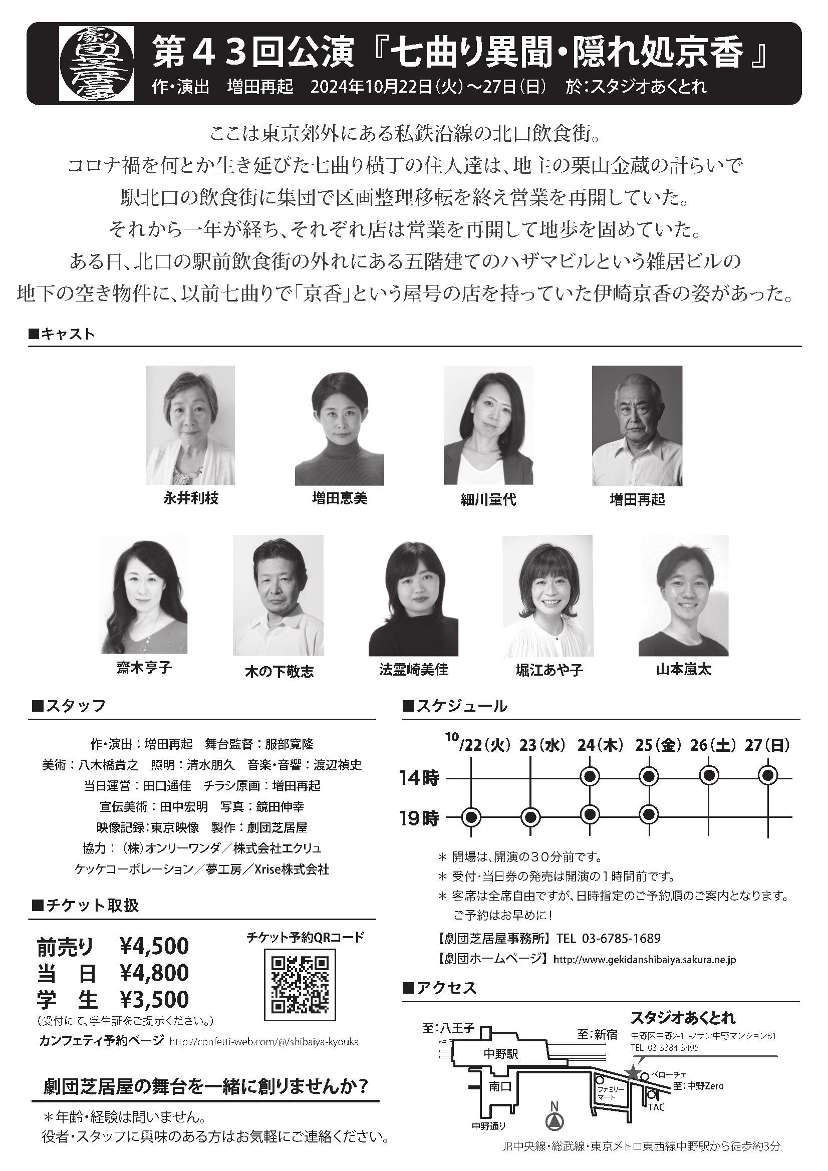 劇団芝居屋第43回公演『七曲り異聞・隠れ処京香』