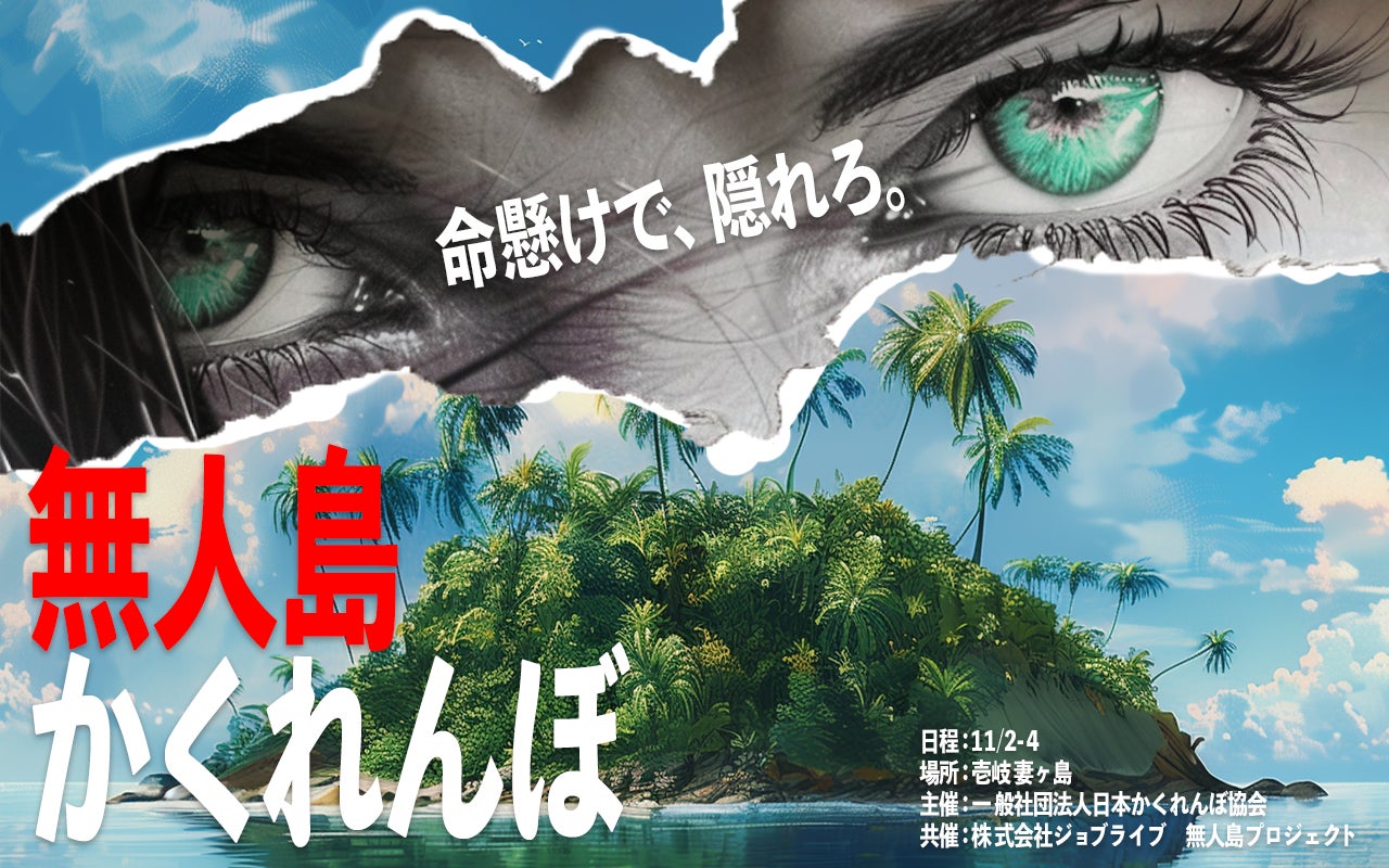 「本気で遊ぶ大人をふやす」ことを目的とし、一般社団法人日本かくれんぼ協会(本部:東京都新宿区 代表者:高山 勝)と株式会社ジョブライブ(本部:東京都千代田区 代表者:梶 海斗)の共催で11月3-4日に長崎県妻ヶ島にて「無人島かくれんぼ2024」を開催致します。無人島を貸し切っての公式かくれんぼの開催は日本初となります。