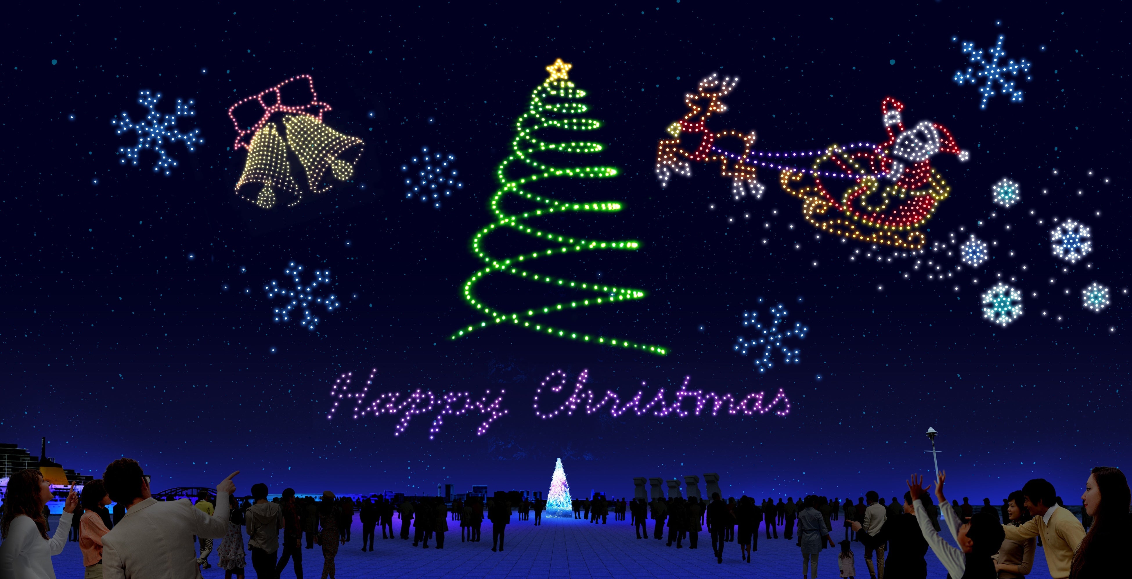 約500 機のドローンがクリスマスの夜空を彩り、雪の結晶や輝くツリー、サンタクロースの姿を空に描き出します。静かな冬の夜空に舞い上がる幻想的な光のアートは、見る人々の心に特別なクリスマスの思い出を刻むことでしょう。