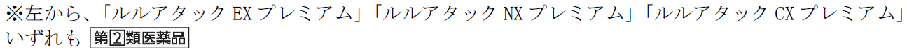 *1 ルルアタックシリーズとの比較 ルルアタックEXプレミアム、ルルアタックCXプレミアム:イブプロフェン1日量を450mgから1日最大量600mgに増量 ルルアタックNXプレミアム:トラネキサム酸を配合