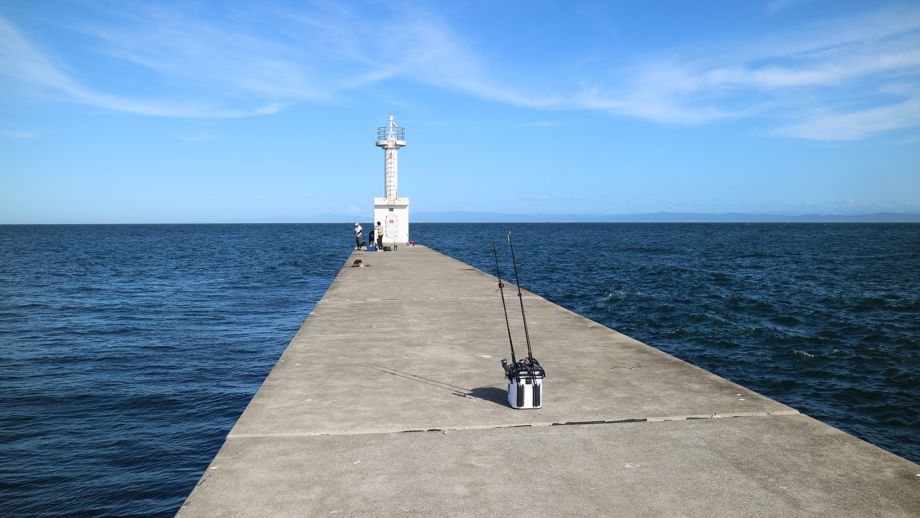 淡路島の東面中央部付近に位置する志筑エリアは、生穂新島、佐野新島、志筑新島、おのころアイランドなど、広大な埋立地が並び、小規模な漁港が多い淡路島の中にあって、大きな変化のある港湾フィールドとなっている。その埋立地の先に浮かぶのが志筑一文字。元々埋立地が沖に出ているため潮通しは抜群で、一文字でも潮位差の大きい時には波止の角から渦を巻くような激流が走る。今回の舞台となった志筑一文字は生穂、志筑両新島の間にあり、南北に流れる潮流を遮るように東西に延びる全長100mほどの小さな一文字。潮当たりが良く波止とは思えない大型魚が回遊したり、居着くことで知られている。