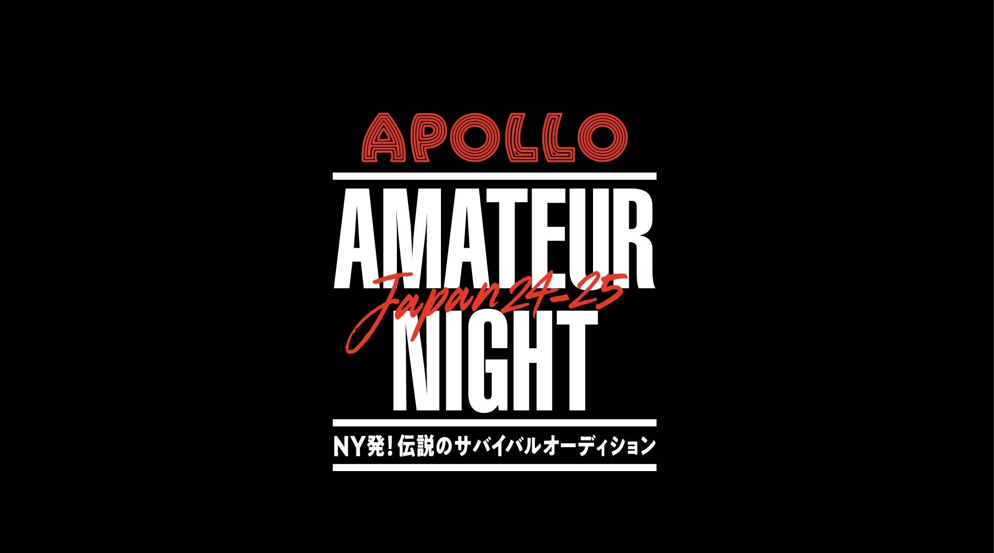 『APOLLO AMATEUR NIGHT JAPAN 24-25(アポロ アマチュアナイト ジャパン ニーヨンニーゴ)』のフジテレビでの番組放送が、本日からスタートします。番組タイトルは『APOLLO AMATEUR NIGHT JAPAN ~NY発!伝説のサバイバルオーディション~』で、本日10月18日(金)から毎週金曜25:55~26:25に放送予定です。