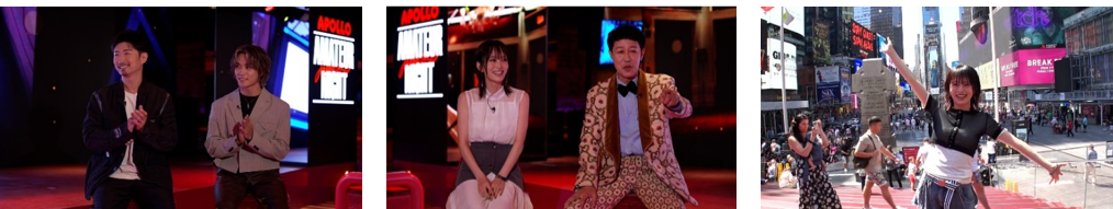 番組MCは、大会のメインアンバサダーである小籔千豊・山本彩の2人が務め、大会全体を通して出場者たちの熱い戦いの模様を見届けます。初回放送では、ゲストにEXILE MAKIDAI・砂田将宏(BALLISTIK BOYZ from EXILE TRIBE)の2人を迎え、パフォーマーとしての視点から「アポロアマチュアナイトとはどんな大会なのか?」を自身の経験とともに深掘りしていきます。さらに番組MCの山本彩が自らニューヨークロケを敢行!その目で見て体験した現在のニューヨークの街並みや、アポロシアターの影響力、その後のアーティストたちの活躍についてレポートしていきます。
