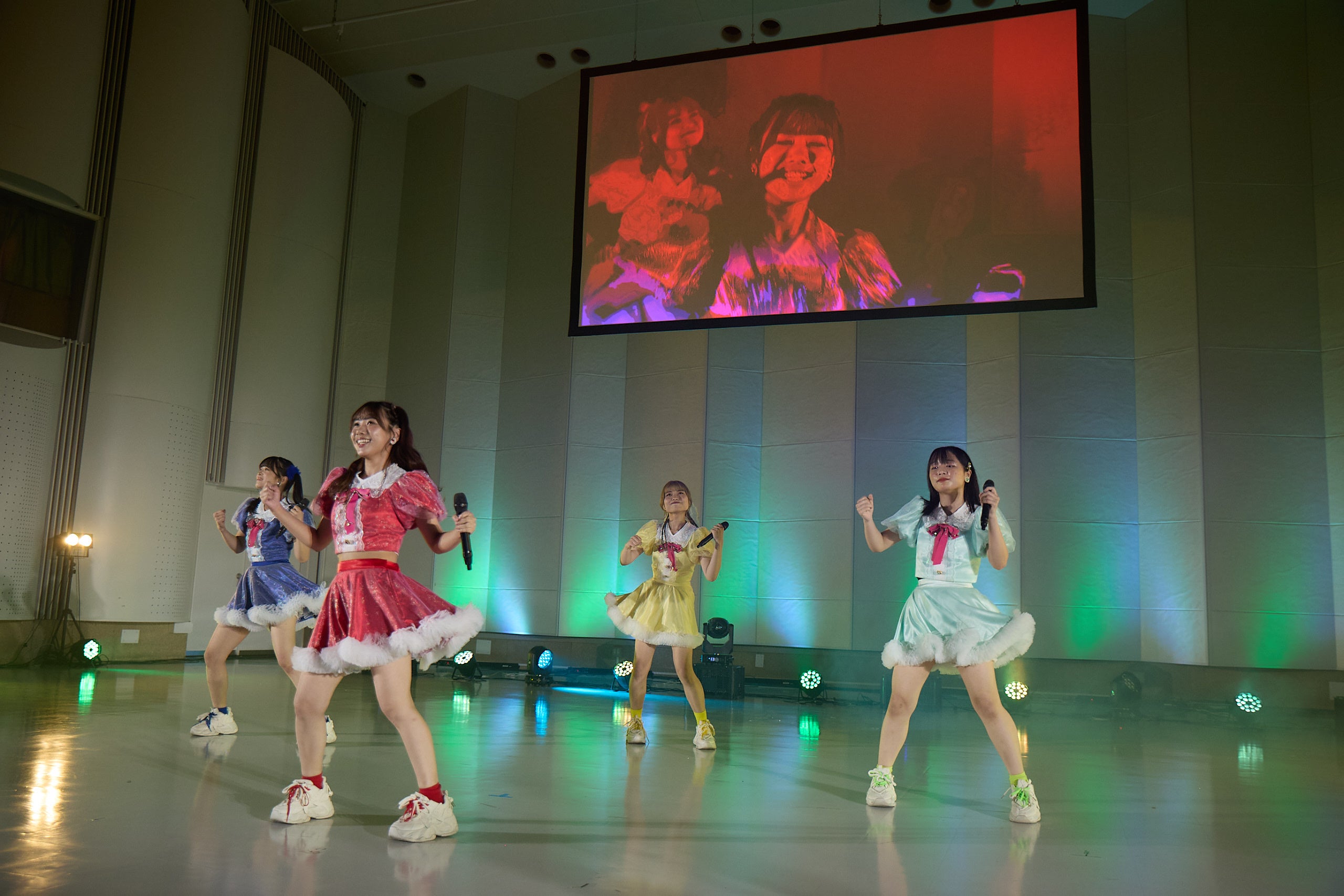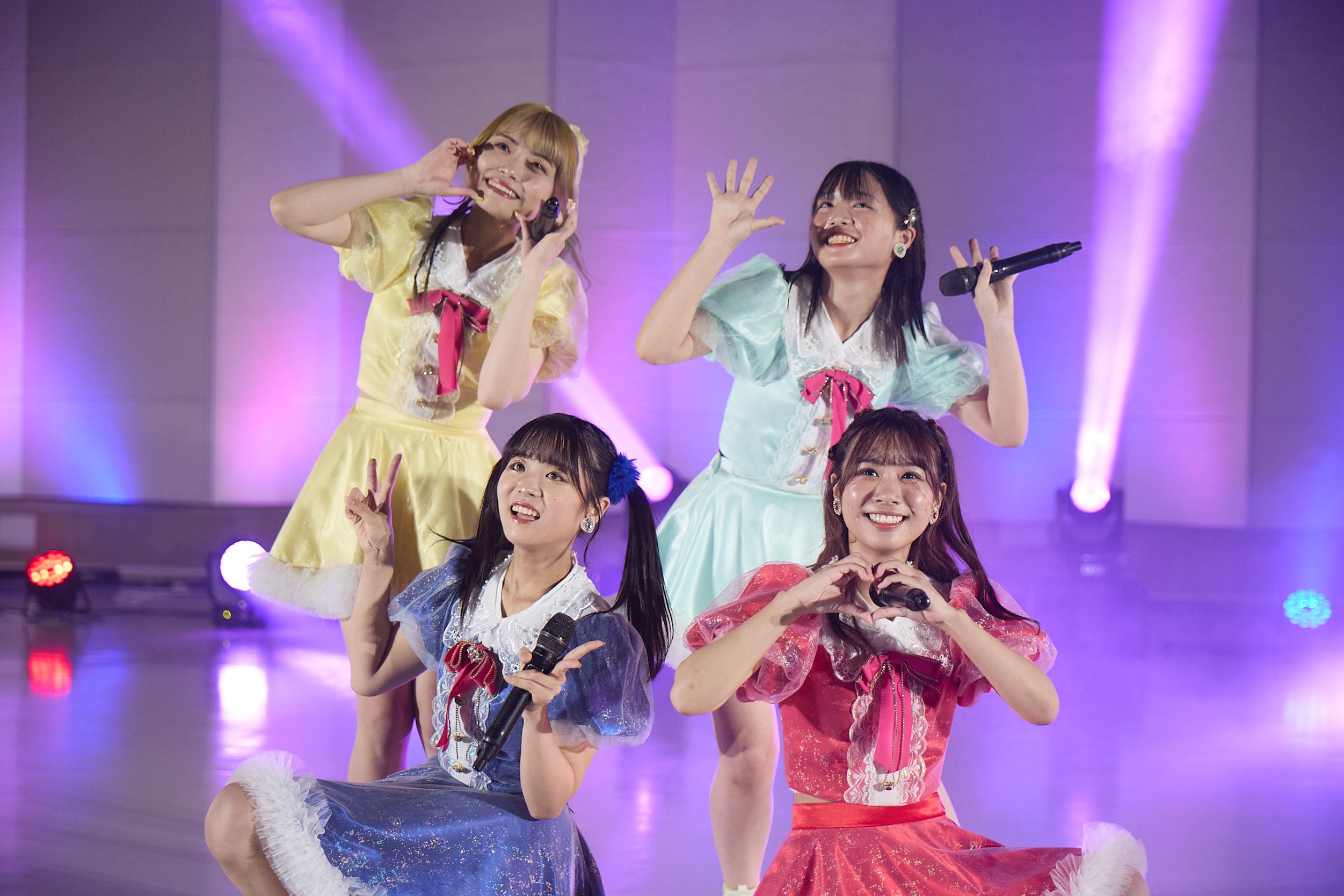 まず初めに登場したのは、「ラジオの魅力」を伝えるため、活動するCBCラジオの番組発ユニット「らじお女子」。この日はラジオ好きなメンバーから4人が登場。毎週水曜日21:00〜CBCラジオで放送中の彼女たちの冠番組「ラジオに恋して」のタイトルにもなっている代表曲「ラジオに恋して」や、「CHANCE」「準未来」など、結成コンセプトやらじお女子の今後を感じさせる5曲で会場を盛り上げた。