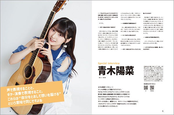 巻頭には、アニメ『BanG Dream! It’s MyGO!!!!!』の要楽奈役などで活躍中の人気声優・青木陽菜さんが登場。巻末には、弦の交換方法やギターコード早見表などのお役立ち情報が掲載されています。まさに、入門者・初心者の必携の仕上がりです!