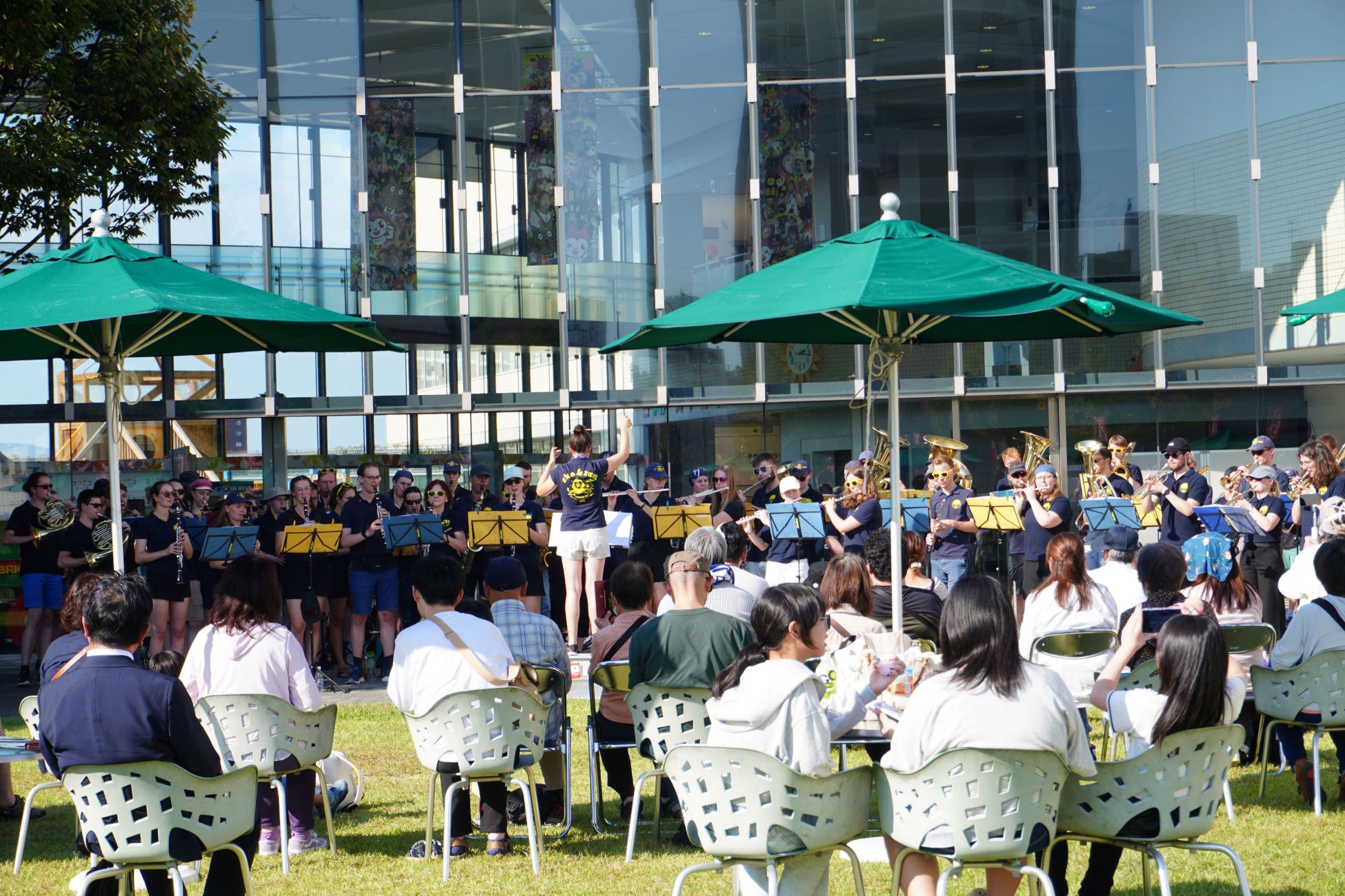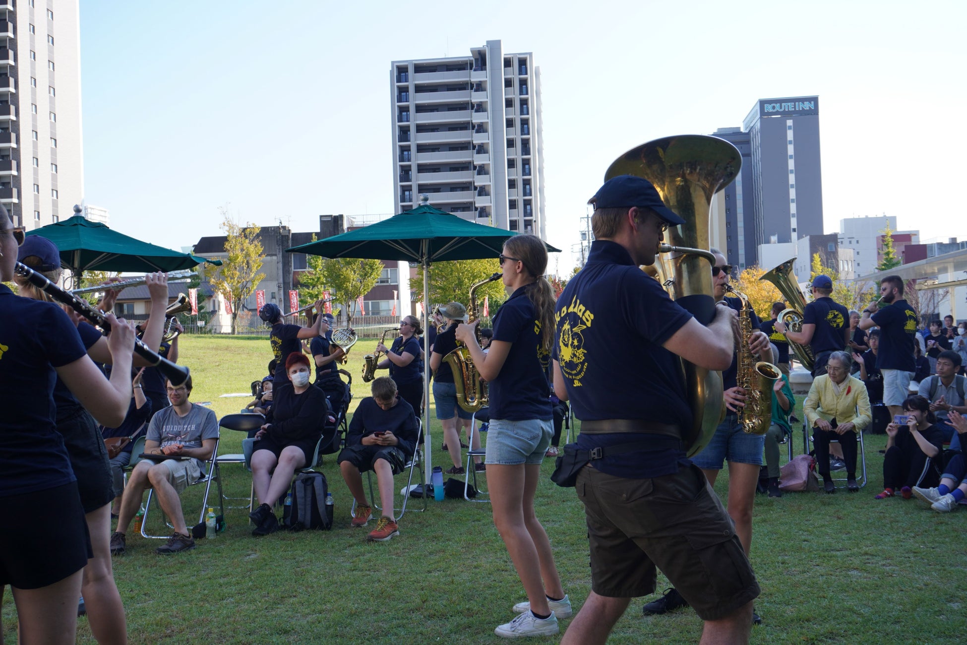 豊橋市で10⽉13⽇(⽇)ドイツ・ブラウンシュヴァイク⼯科⼤学の吹奏楽団AkaBlasの野外演奏会がこども未来館ここにこで開催されました。⼤勢の観客の皆さんがAkaBlasの演奏に合わせて手拍子を打ったりリズムをとったりなど、晴天のさわやかな季節のなか、思い思いに楽しんでいました。