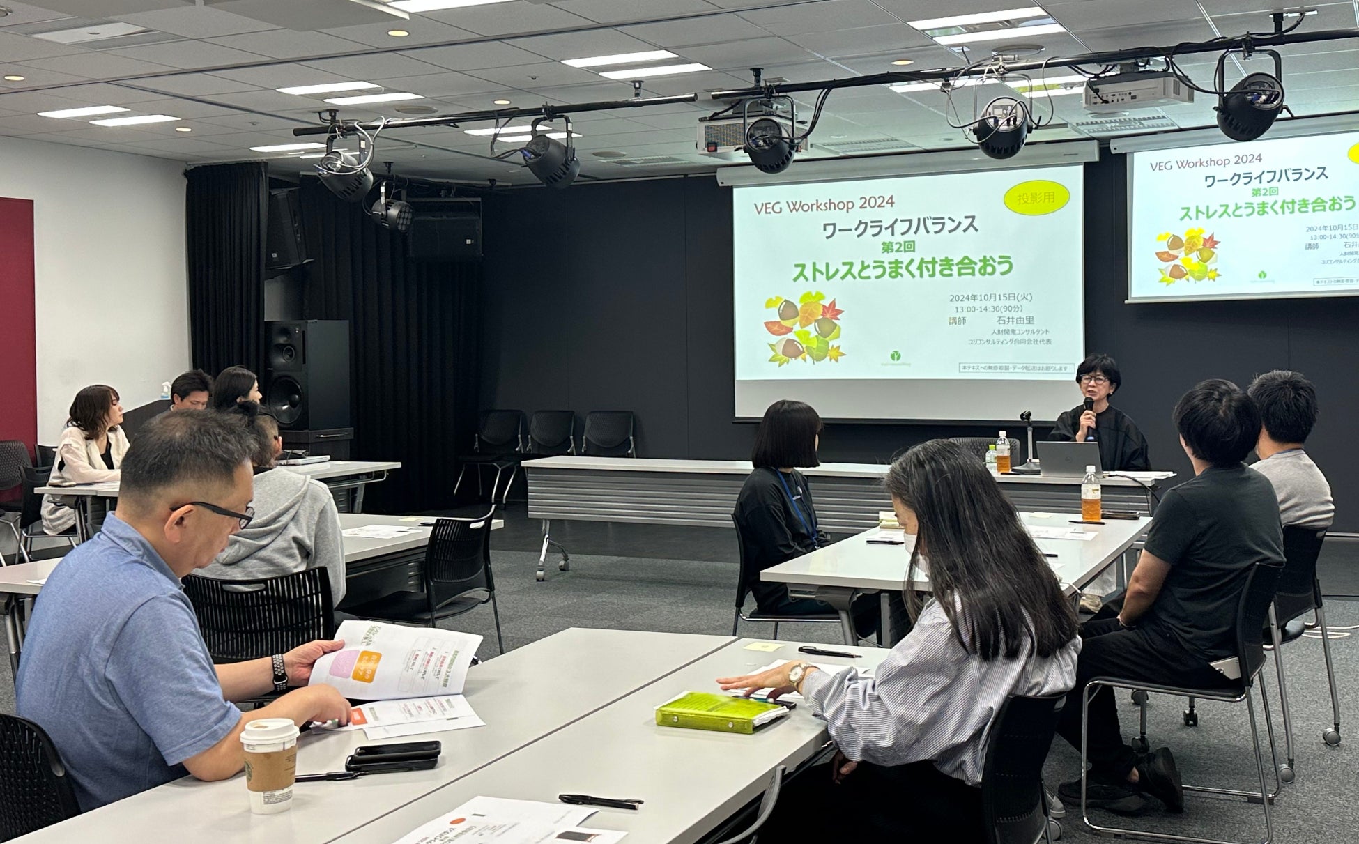 10月に開催した「VEG Workshop 2024」では、「ワークライフバランス:ストレス編~ストレスとうまく付き合おう」をテーマに、講師に石井由里さん(ユリコンサルティング合同会社代表)をお招きしました。石井さんには以前にもワークライフバランスについての講座でお話しいただき、ワークライフバランスの基礎知識・その重要性・どのような効果が得られるのかなどをご指導いただきました。