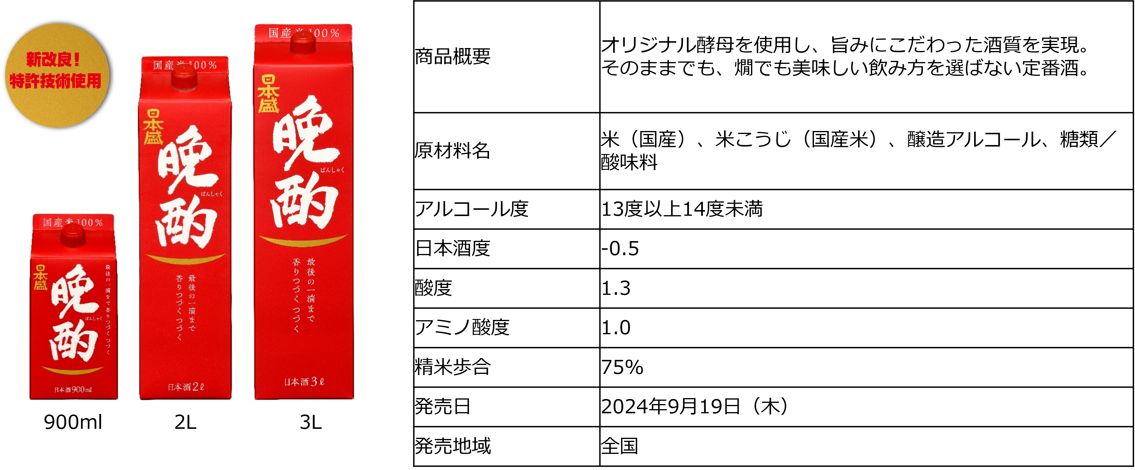 日本盛の「晩酌」は、最後の一滴まで「日本酒本来の良い香り」を楽しむことができます。その秘密は、特許取得の「香り長持ち製法」 (特許第7101362号) です。日本盛が独立行政法人酒類総合研究所と共同で開発した、老香の発生を抑える酵母を用いた製法を採用することにより、イヤなにおいの原因の一つである老香の発生を抑えることに成功しました。