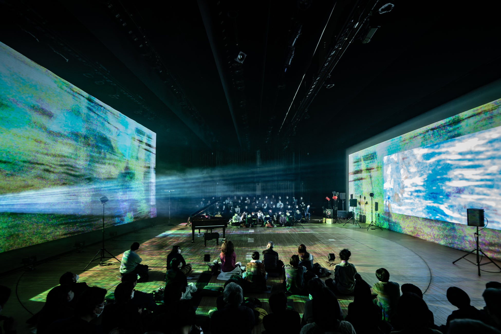 2020/2022年度劇場実験型プロジェクト「多層化手法による音楽詩劇の創作と上演~アクースモニウムを中心とした音楽と映像、言葉の融合~」(研究代表者:檜垣智也)の劇場実験記録。