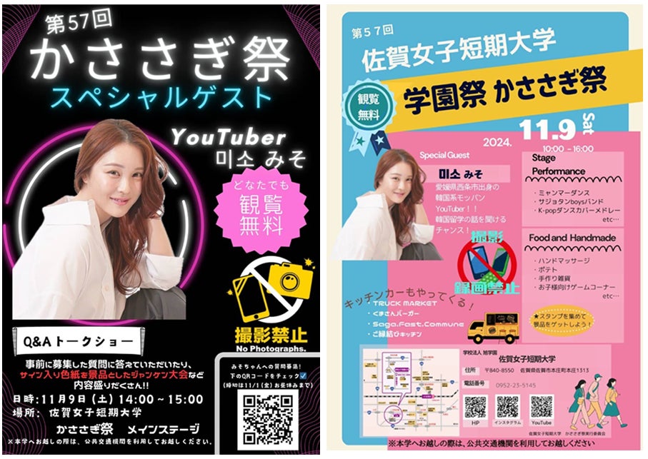韓国文化に精通し、すべてのコースで韓国留学の機会を提供している佐賀女子短期大学の学園祭「かささぎ祭」に、みそがスペシャルゲストとして出演いたします。