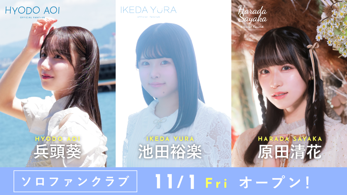 株式会社ANYLAND(本社:東京都渋谷区、代表取締役:黒澤隼人、以下ANYLAND)は、アイドルグループSTU48メンバーの兵頭葵・池田裕楽・原田清花のソロファンクラブを、11月1日(金)19:00にオープンいたします。