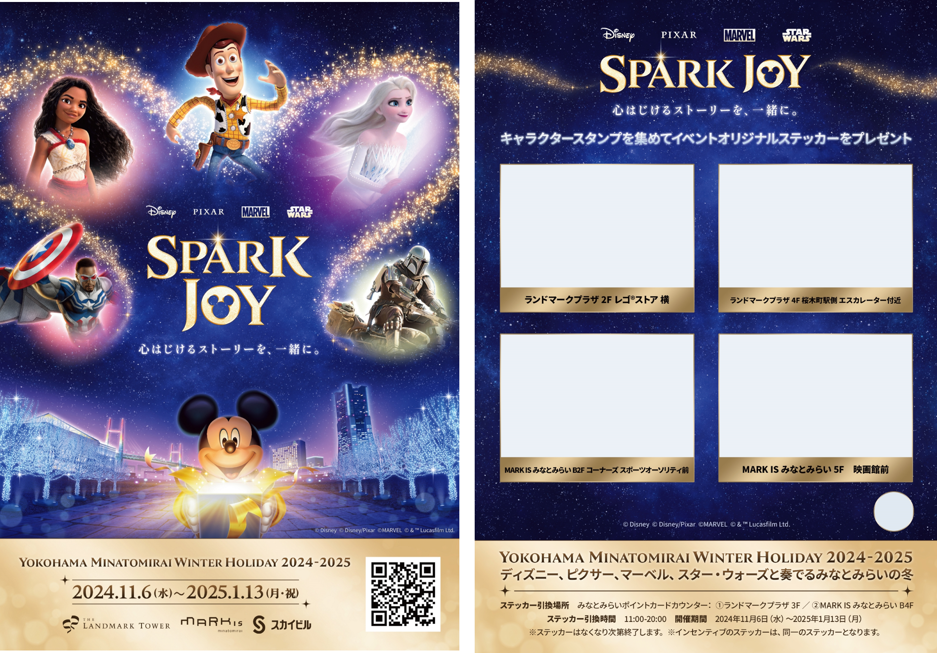 横浜ランドマークタワー(ランドマークプラザ・69階展望フロア「スカイガーデン」)、MARK IS みなとみらい(神奈川県横浜市/運営:三菱地所プロパティマネジメント株式会社)、スカイビル(同/運営:株式会社横浜スカイビル)は、2024年11月6日(水)~2025年1月13日(月・祝)の期間中、ディズニー、ピクサー、マーベル、スター・ウォーズの4つのブランドとともに、クリスマスからニューイヤーシーズンを盛り上げるホリデーイベント「YOKOHAMA MINATOMIRAI WINTER HOLIDAY 2024₋2025」を開催します。 本イベントでは「Disney | PIXAR | MARVEL | STAR WARS | “SPARK JOY” 心はじけるストーリーを、一緒に。」と題し、世界中で愛され続ける4つのブランドを代表する作品やキャラクターとともに、冬のみなとみらいを煌めきとトキメキで彩ります。