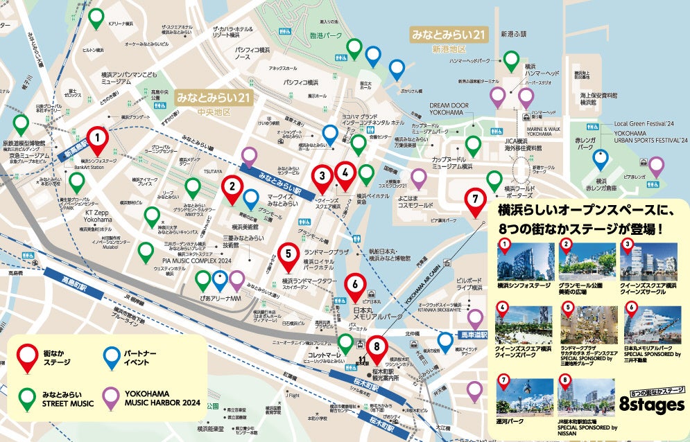横浜らしいオープンスペースが舞台となる8つの街なかステージでは、観覧無料でお楽しみいただける音楽、ダンス、アニメなど多彩なジャンルのライブパフォーマンスや気軽に参加・体験できるイベントを多数展開します!(詳細は別添資料参照)