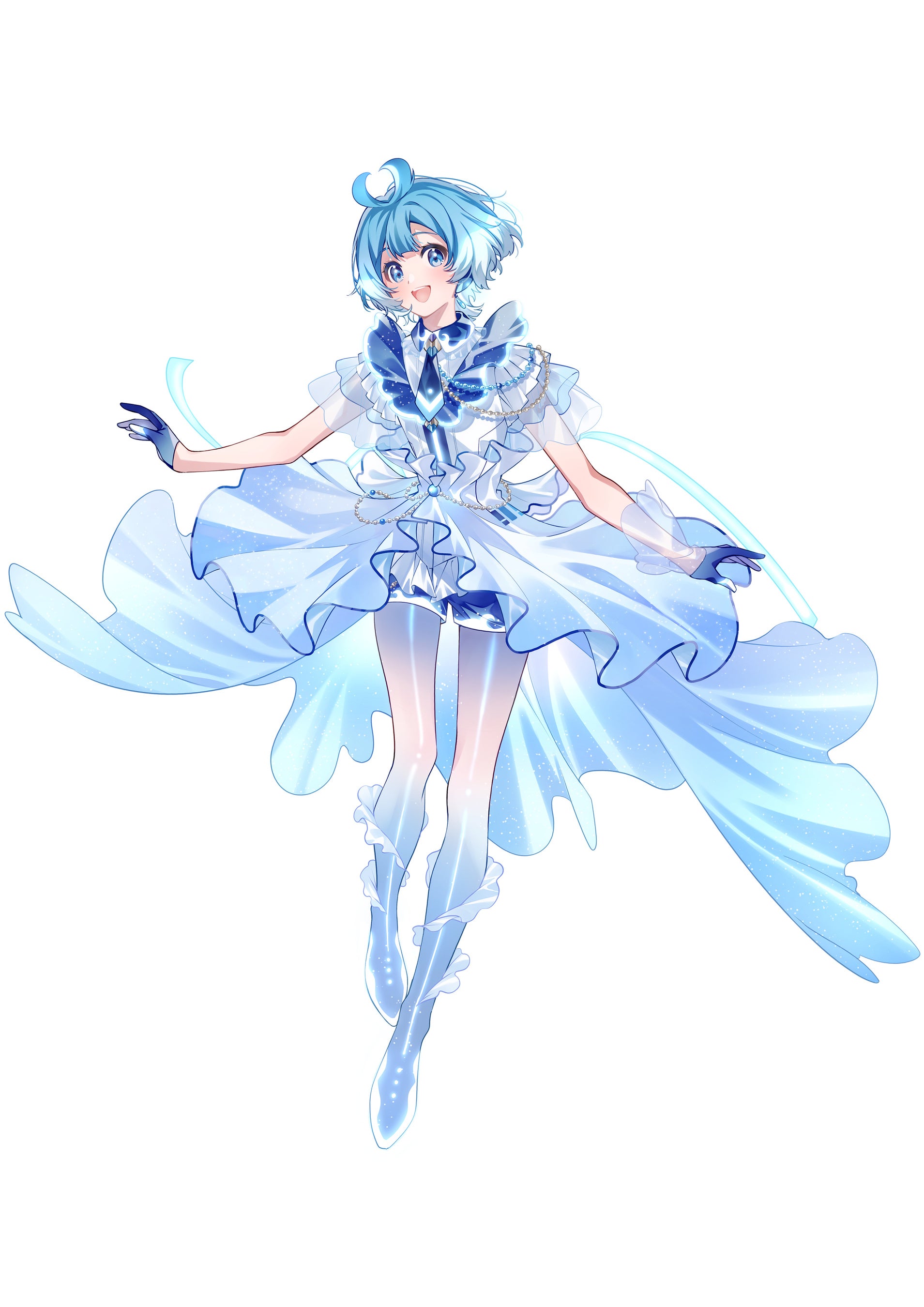 コメント: 名前にもあります通り「湊」という文字から「海を奏でる」をイメージし、ふわっと動いた時に衣装が波のように見えたら良いな、と思いながらデザインいたしました。「湊くるみ」をよろしくお願いいたします!