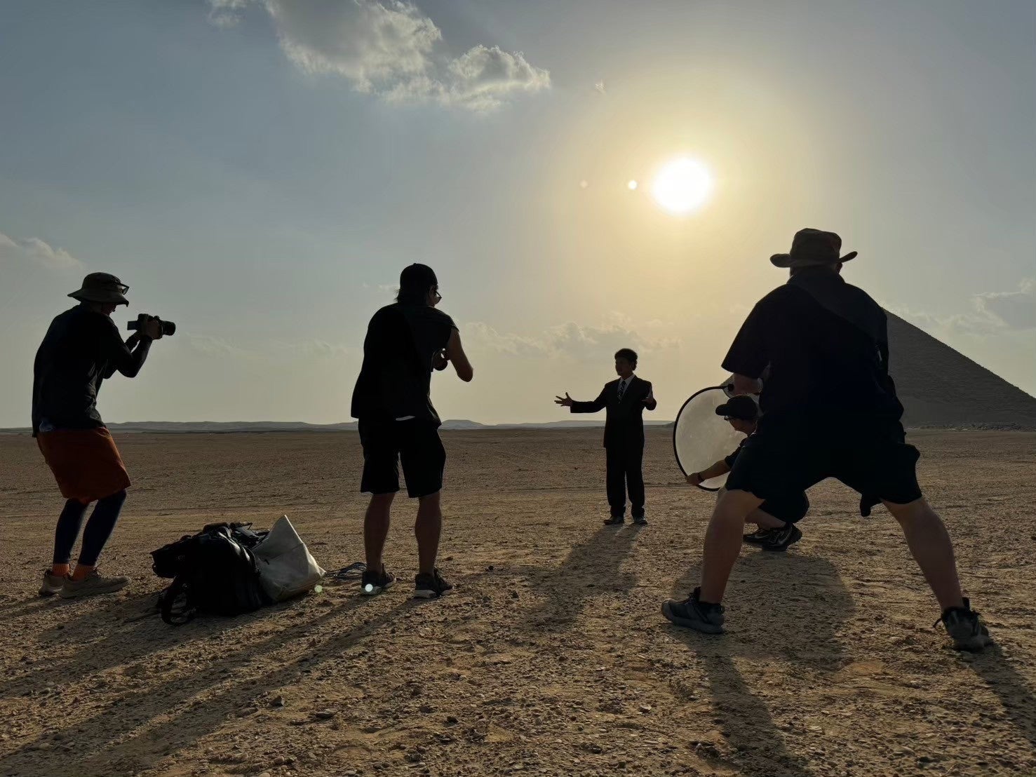 撮影は非常にハードな行程で、灼熱のエジプトの砂漠とピラミッドの中、全身スーツを身を包まれて本当に厳しいものだったと思いますが、常に笑顔を絶やさず、逆にスタッフの体調を気遣ってくださるなど、