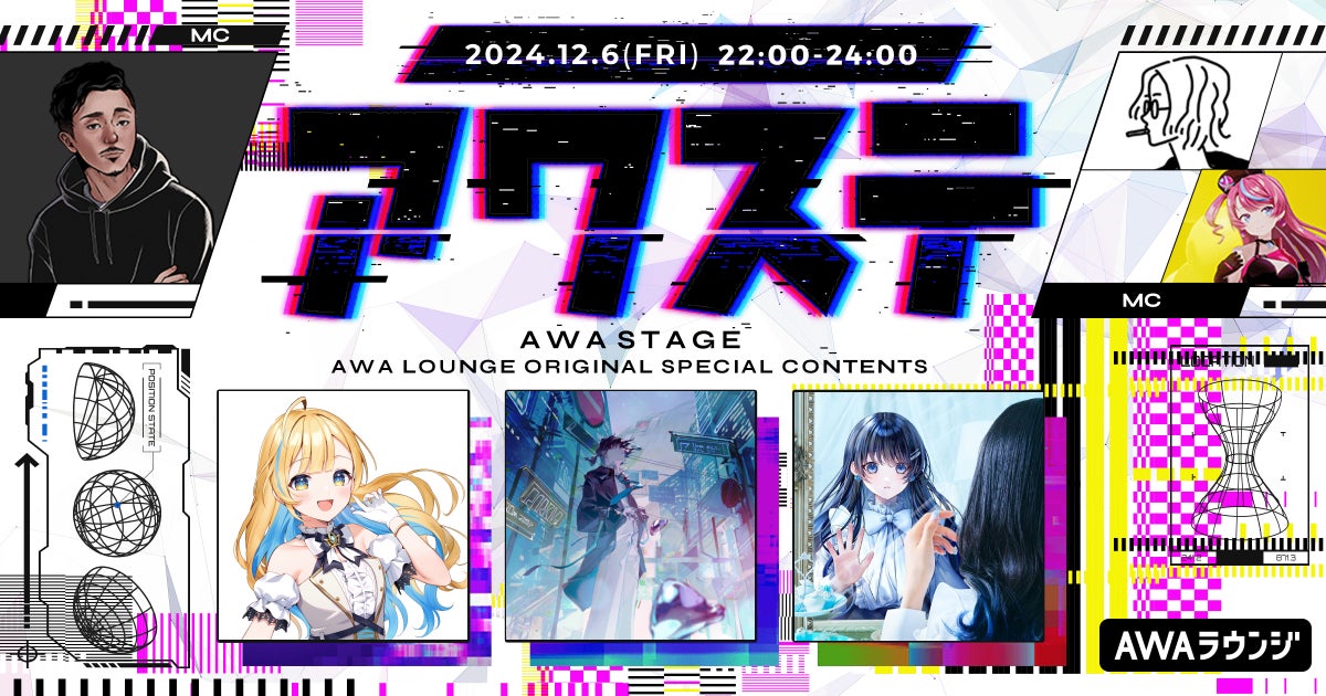 AWA株式会社(本社:東京都港区、代表取締役CEO:冨樫晃己)が運営する、サブスクリプション型(定額制)音楽ストリーミングサービス「AWA(アワ)」は、2024年12月6日(金) 22:00より、無料で誰でも参加できるオンライン空間「ラウンジ」で、ネットシーンを中心とした注目アーティストなどを毎回ゲストに招き、有識者であるMCとともにシーンの次のステージを切り開く番組「AWAステージ(通称:アワステ)」の第39回を開催いたします。