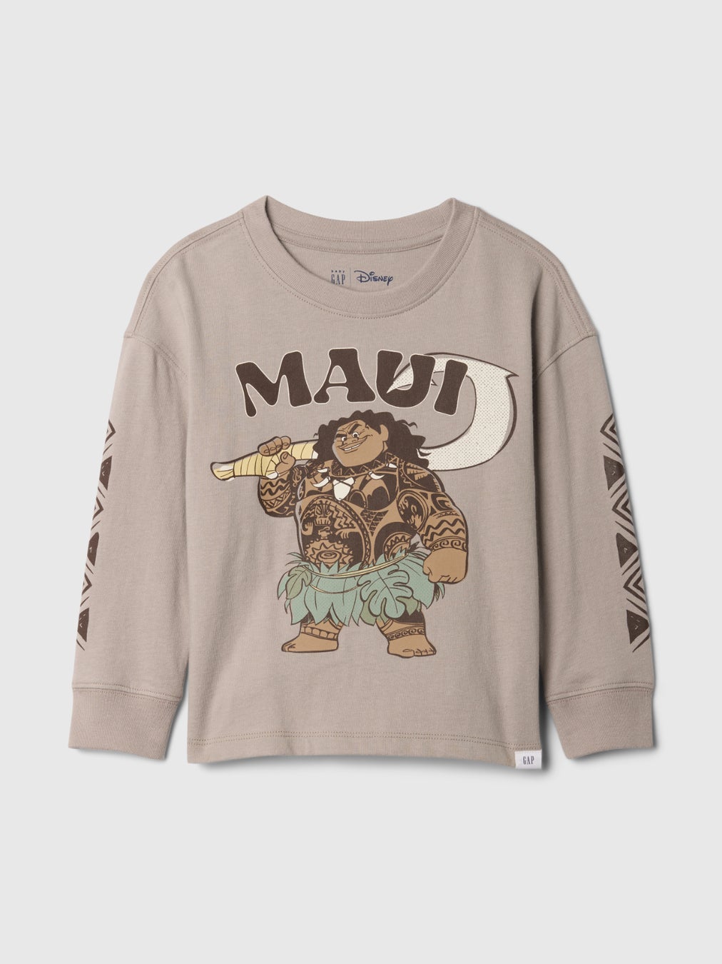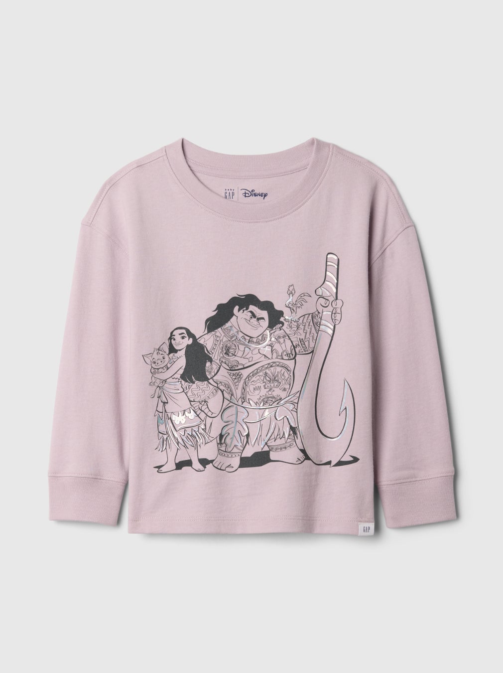 ガールズは、ヘイヘイとプアがデザインに描かれたグラフィックTシャツ、オーロラに輝くモアナとGAPロゴが融合されたグラフィックTシャツ2種がラインナップ。トドラーガールズは、フードにGAPロゴと胸元にモアナがデザインされたフーディー、モアナやマウイ、ヘイヘイ&プアと人気キャラクターたちが描かれたグラフィックTシャツの全5種が登場します。