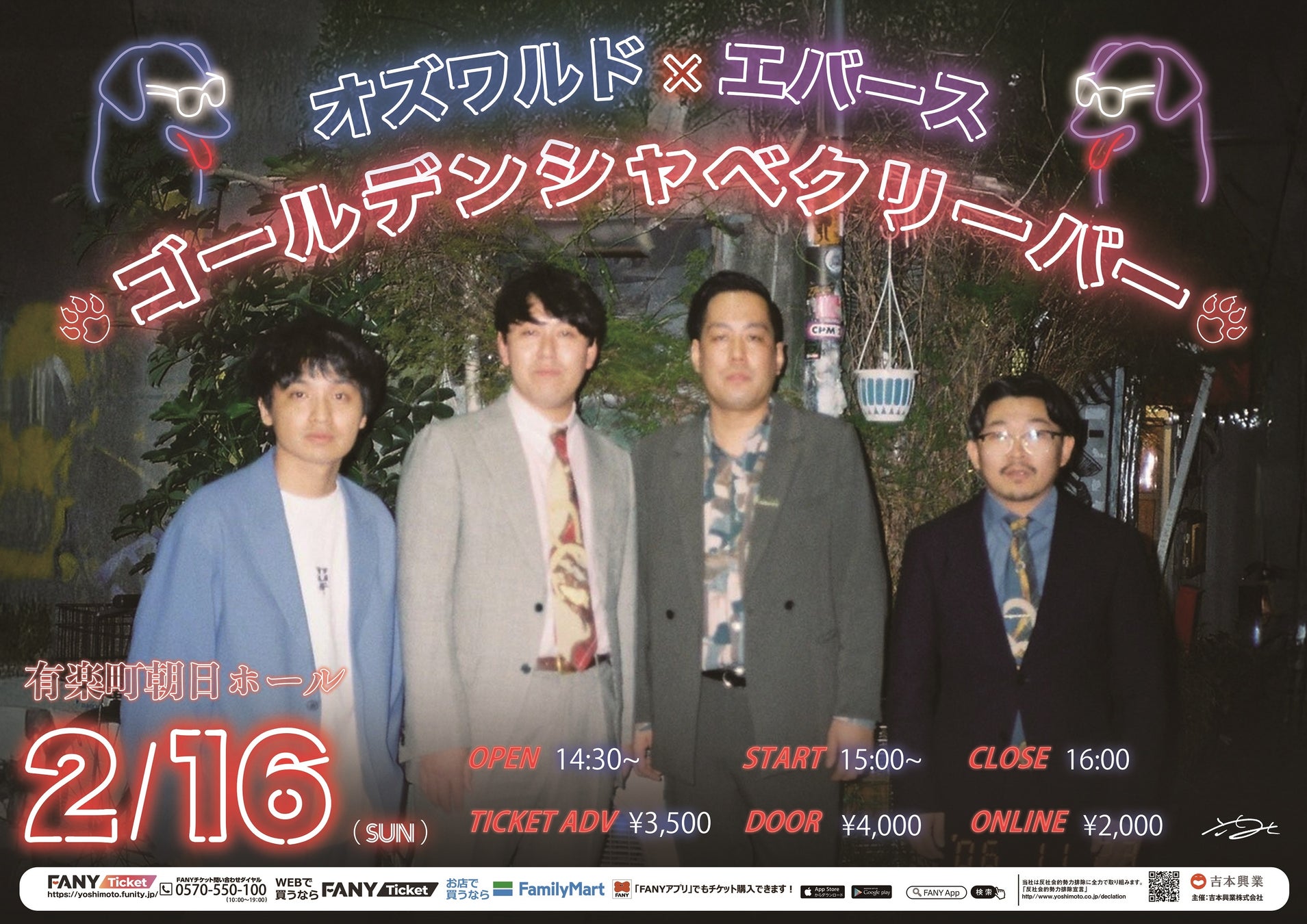 このたび、2025年2月16日(日)に東京・有楽町朝日ホールにて「オズワルド×エバース 『ゴールデンシャベクリーバー』」を開催いたします。