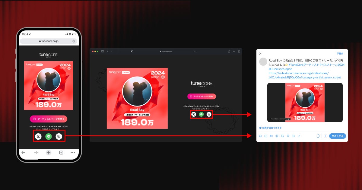 ※アーティストは、アーティストマイルストーンをSNSなどでシェアが可能。