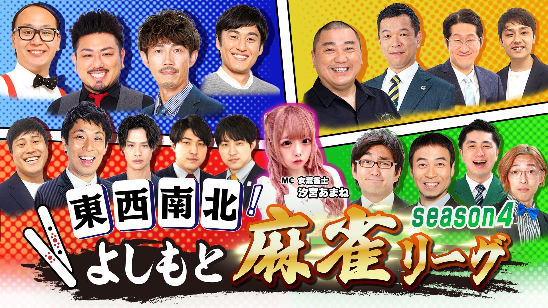 吉本の麻雀大好き芸人たちが『東西南北』4つのエリアに分かれチームを結成し、半年間のリーグ戦に挑む『よしもと麻雀リーグ』シーズン4が開幕します! 優勝チームには賞金があり、個人賞として総合獲得得点の上位4名にも賞金があります!