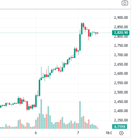 10月7日時点で、ETHの価格は週間で16%上昇し、Gate.io取引所では$2,819 ETH/USDTで取引されています。特に、直近24時間で7.55%の価格上昇を記録しました。この資産は、トランプ勝利のニュース以来、多くの暗号資産と同様の価格パフォーマンスを反映しています。